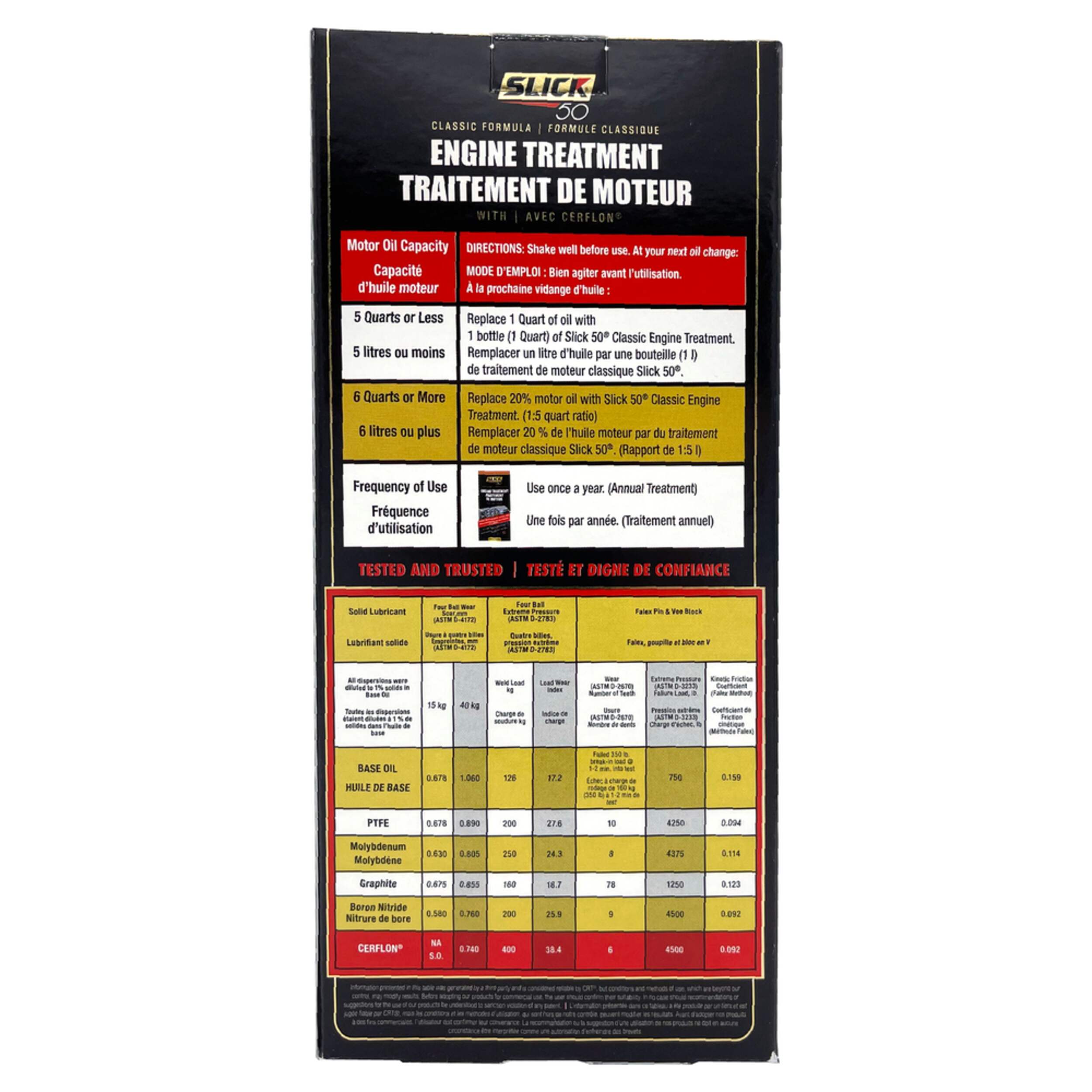 Traitement pour moteur Slick 50, classique, comprenant une formule originale, nouvelle et améliorée de PTFE, grâce à la technologie Ceramic Cerflon qui traite les moteurs avec la meilleure protection pour réduire la friction et la chaleur