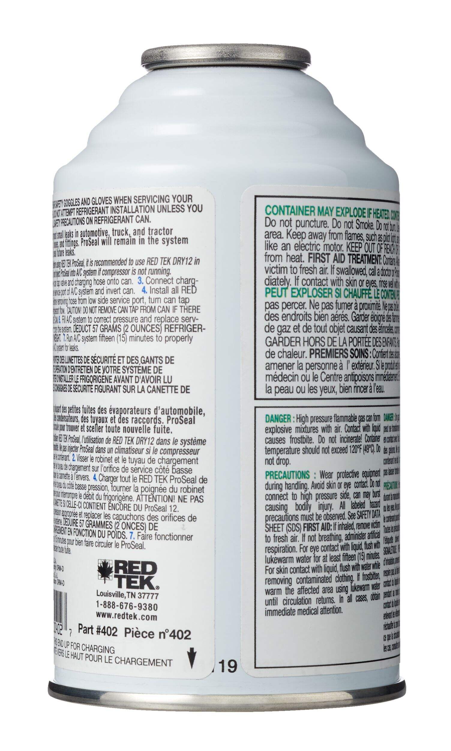 Contient 2 oz de frigorigène RED TEK
