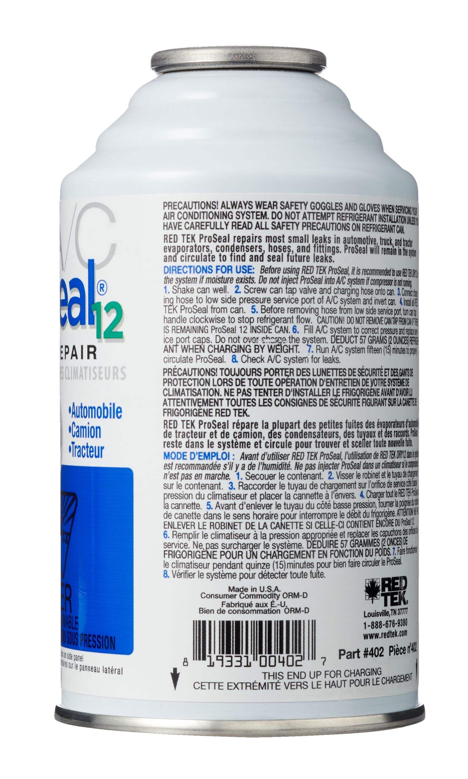 RED TEK ProSeal reste dans le circuit jusqu'à ce qu'il soit requis et peut étanchéifier plusieurs fuites. Conçu pour sceller les pièces métalliques et en caoutchouc des systèmes de climatisation