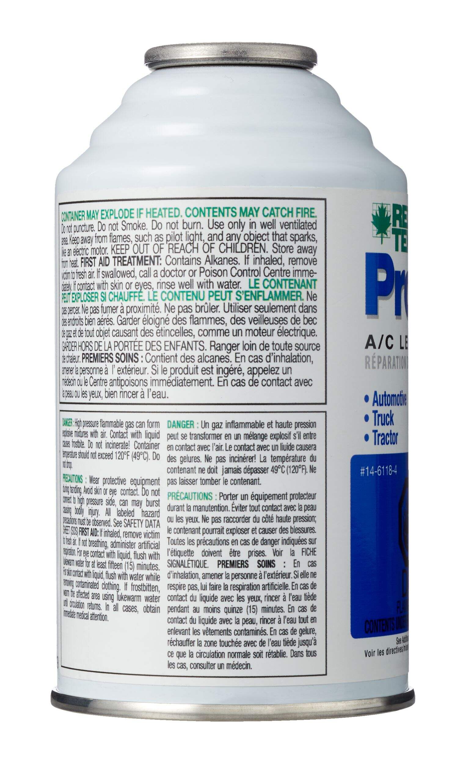 Réparateur de fuites de climatisation RED TEK ProSeal spécialement formulé pour colmater de façon permanente les fuites dans les évaporateurs, les condenseurs, les compresseurs, les accumulateurs, les lignes métalliques et les tuyaux. Le réparateur de fuites de climatisation RED TEK ProSeal est recommandé pour les systèmes qui ont déjà été chargés à l'aide des réfrigérants RED TEK et du réparateur de fuites de climatisation RED TEK LeakStop, mais qui perdent encore leur charge, ou dans les systèmes où il y a une fuite connue dans un système de réfrigération.