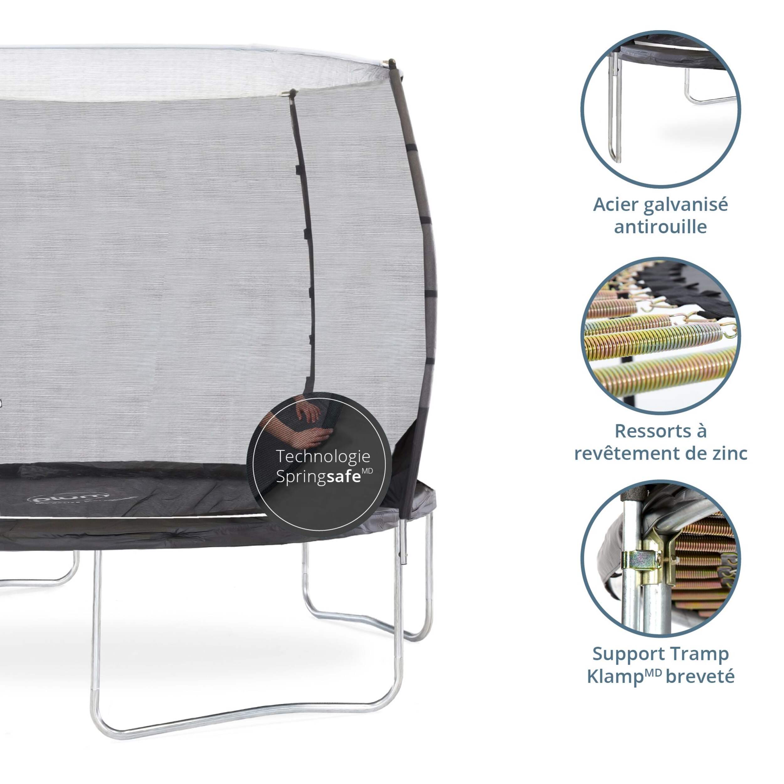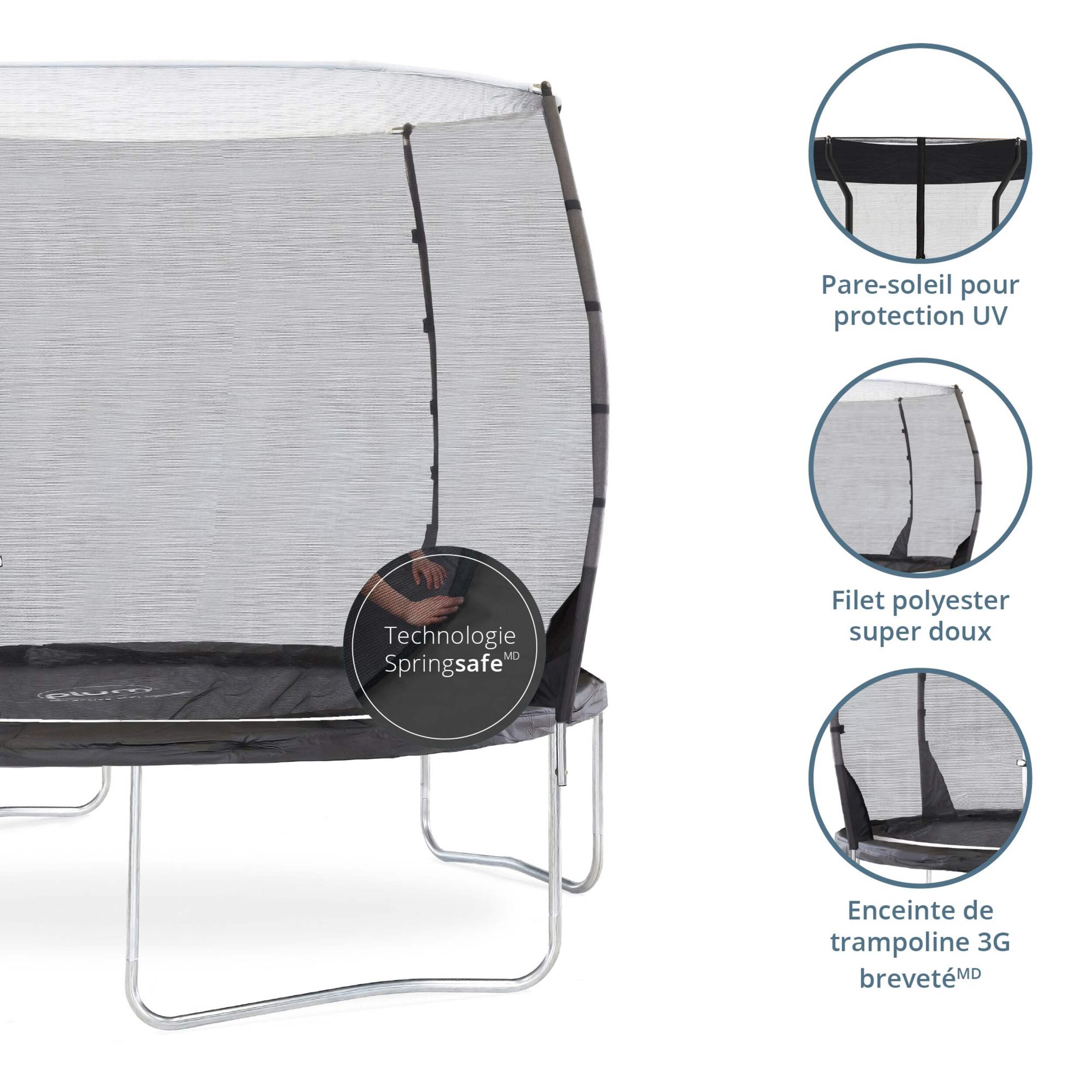 Trampoline Plum Space Zone avec enceinteMD SpringsafeMD 3G brevetée qui éloigne l'utilisateur des ressorts et de l'armature