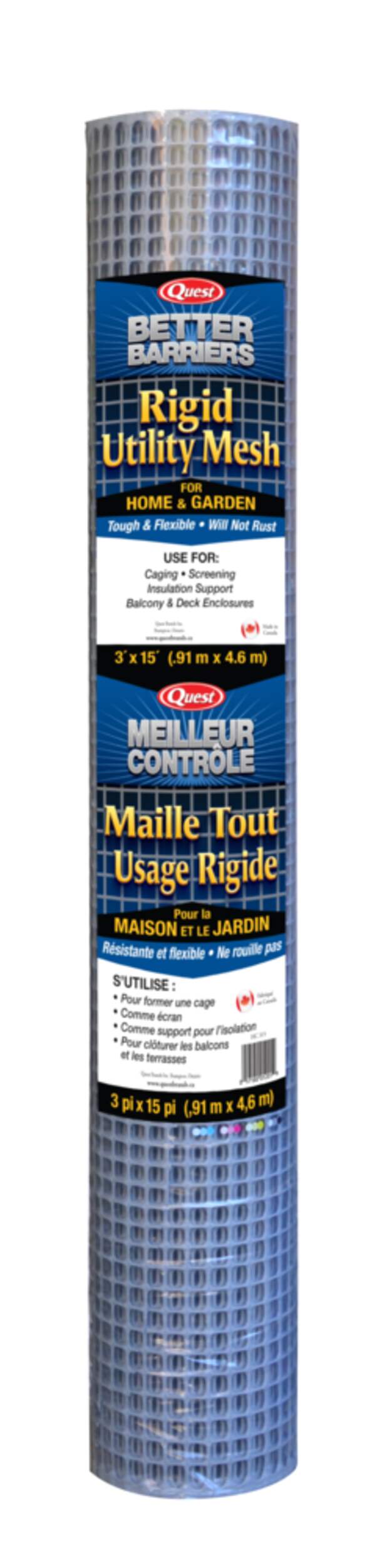Le treillis tout usage rigide Quest en plastique remplace le treillis métallique classique. Il est idéal pour les endroits très humides puisqu'il ne se corrode pas et ne rouille pas. Ce treillis synthétique fonctionne bien comme cage, écran, support d'isolation et pour les clôtures de terrasses et de balcons. Sa structure rigide mais flexible est dotée d'une grille de 1,27 cm (1/2 po) pour bloquer efficacement les petits intrus ou créer des enclos pour les petits animaux.