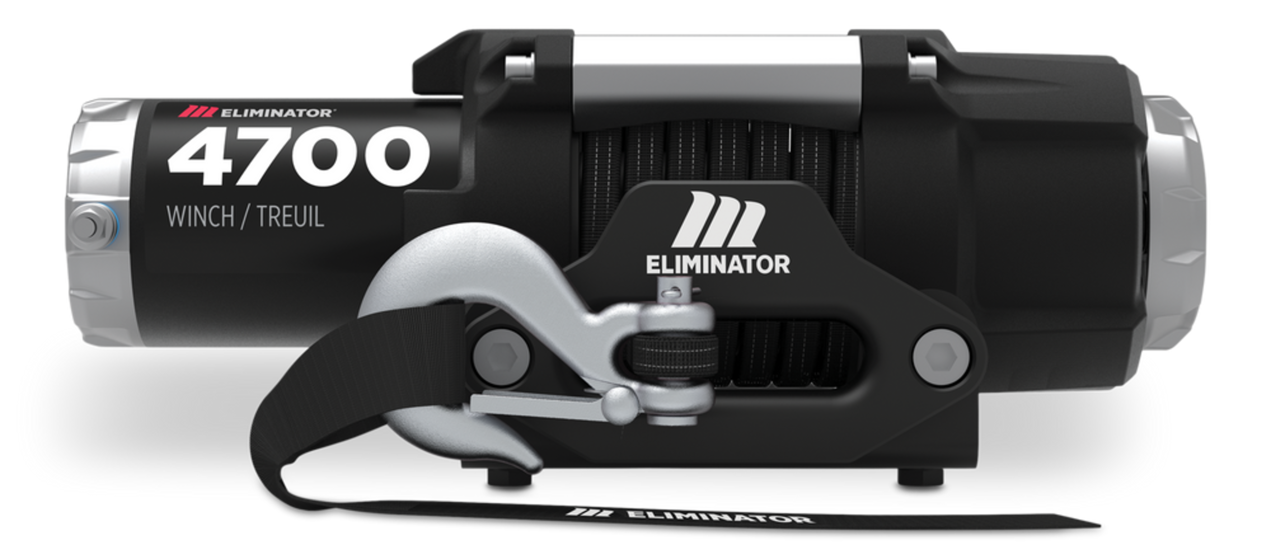 Treuil MotoMaster Eliminator avec corde synthétique, 4 700 lbTreuil MotoMaster Eliminator avec corde synthétique offrant une traction nominale de 2 132 kg (4 700 lb). Guide-câble à filetage rapide, voie de montage, mini-interrupteur à bascule, crochet de levage à chape, contacteur/solénoïde et câbles de treuil inclus.
