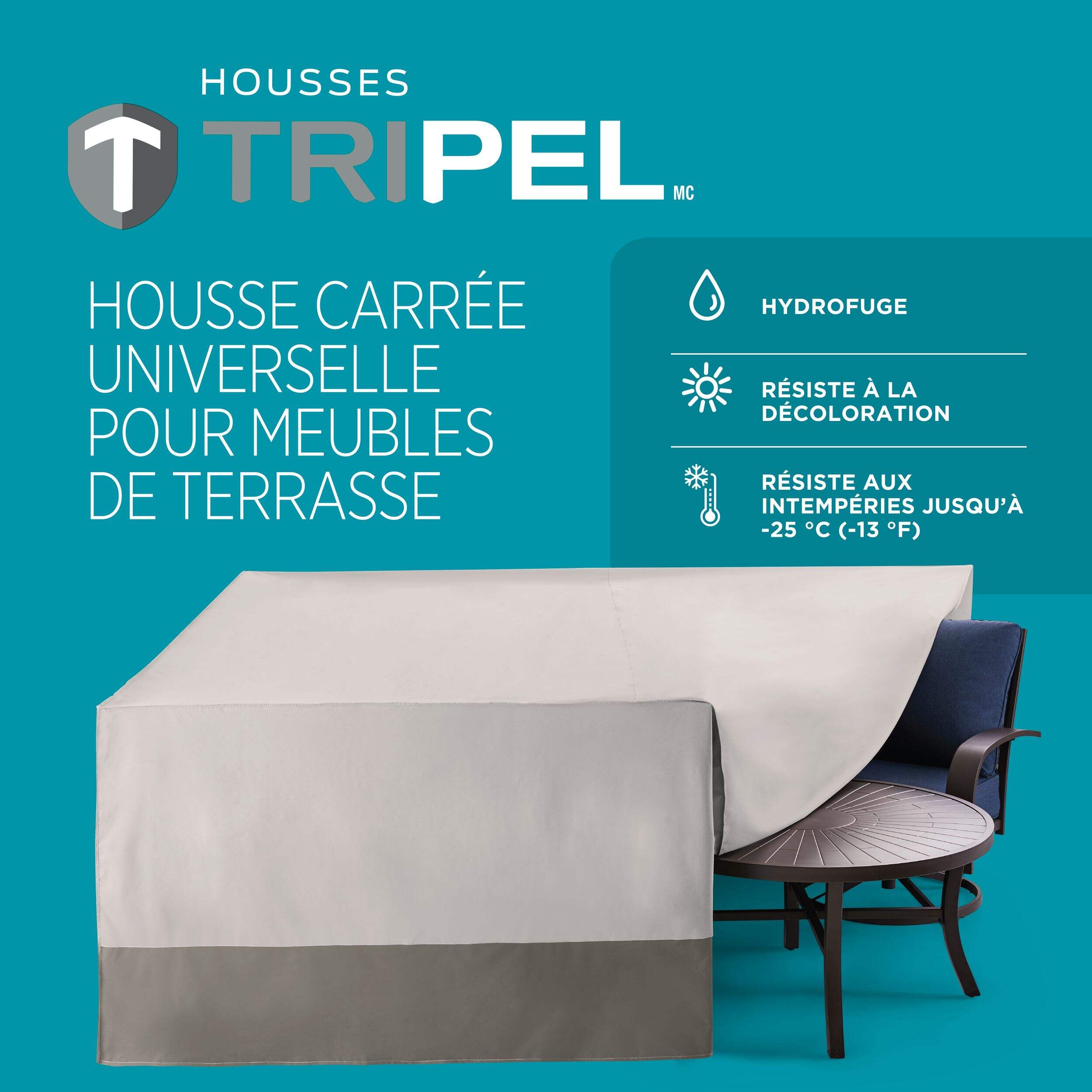 Housse universelle carrée d'extérieur/de jardin TRIPEL série 400 qui est la solution idéale pour protéger vos meubles d'extérieur des intempéries lorsqu'elle n'est pas utilisée. Housse tout usage pour meubles de jardin qui résiste à l'eau et à la décoloration pour une protection toute l'année contre le soleil, la glace ou la poussière. Housse de jardin maintenue en place par des courroies autoagrippantes. Housses TRIPEL série 400 fabriquées à partir d'un tissu d'au moins 400 deniers.