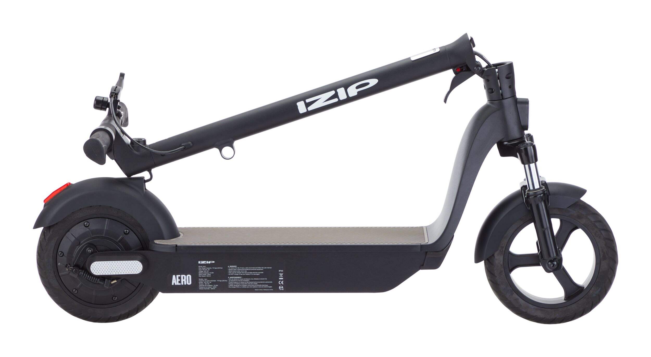 Trottinette électrique iZip Aero pour adultes qui est dotée d'un puissant moteur pour les roues arrière de 350 W avec 3 modes de vitesse et une vitesse maximale de 32 km/h