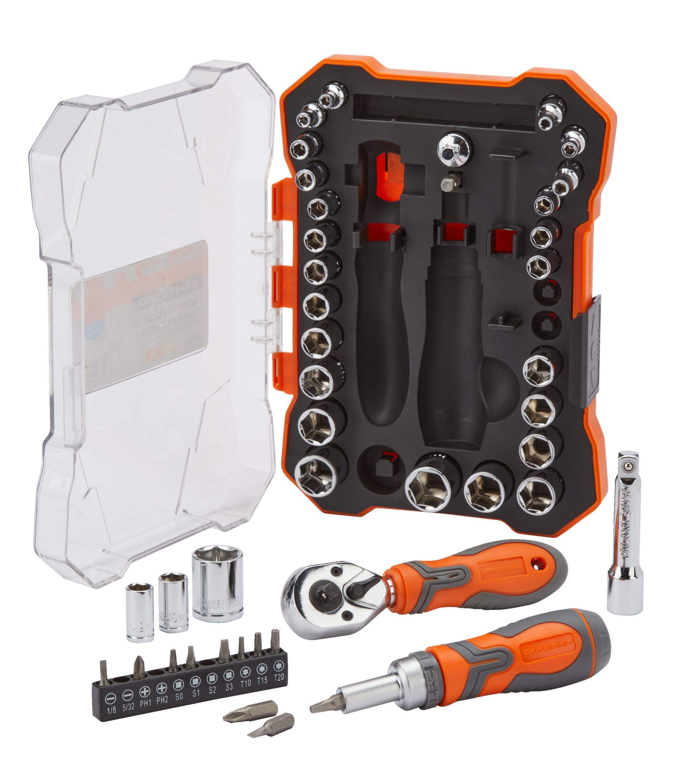 L'ensemble d'outils et douilles de réparation pour la maison Certified est conçu pour fournir des outils fiables pour tout un ensemble de projets domestiques. Sa conception compacte de 43 pièces comprend des outils et des accessoires essentiels pour des réparations rapides, des réparations générales et des tâches d'entretien. Conçu pour offrir durabilité et commodité, cet ensemble assure un travail efficace tout en gardant les outils rangés en toute sécurité dans son étui robuste pour faciliter le transport et l'accès.