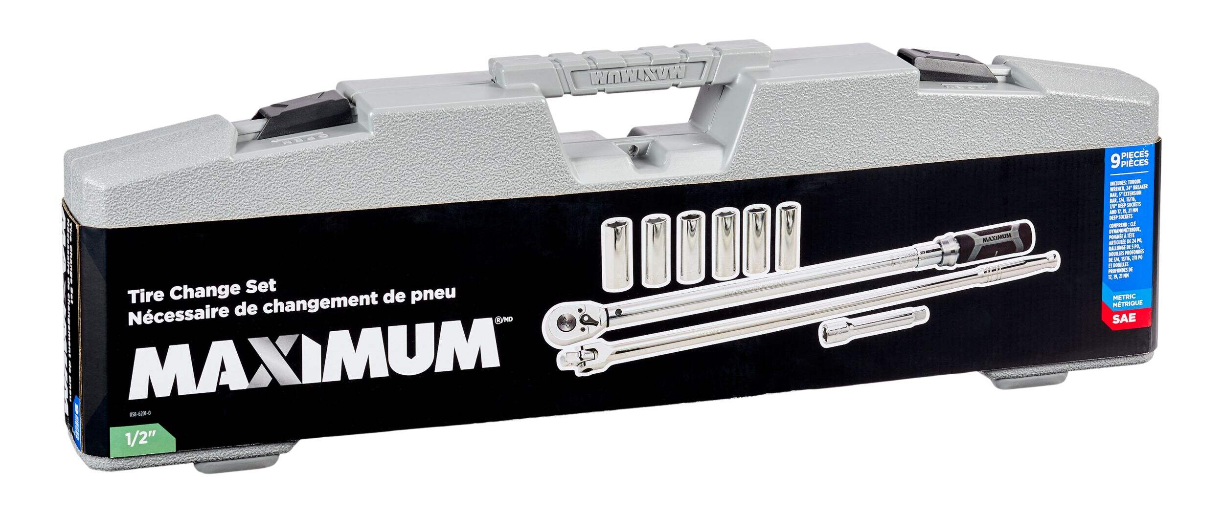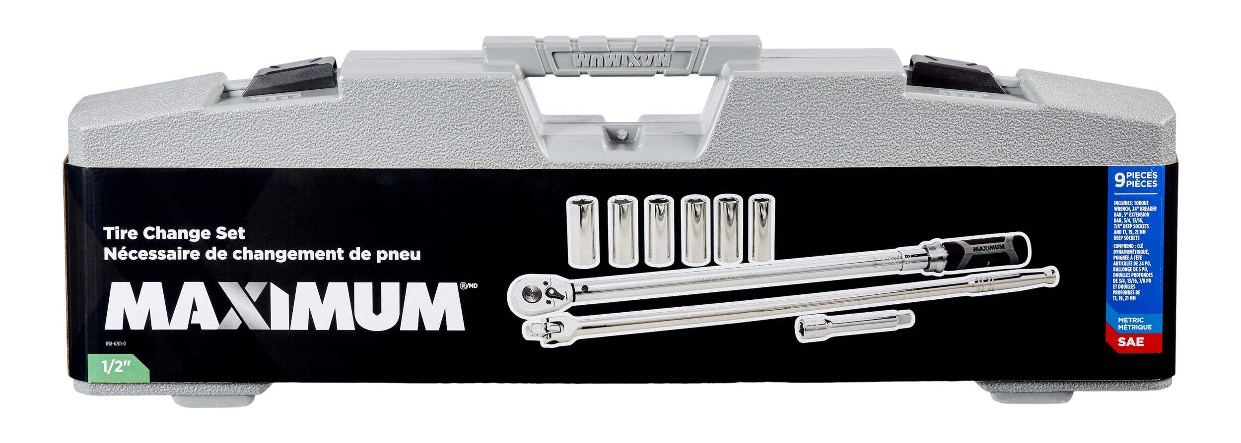 La trousse pour changement de pneus MAXIMUM contient tout ce dont vous avez besoin pour changer rapidement et efficacement vos pneus à la maison ou sur la route. Une clé dynamométrique moletée d'une portée de 50 à 250 pi-lb assure une application précise du couple sur les écrous de roue pour une installation sécuritaire. Les douilles à chocs profondes conviennent à la plupart des roues, tandis que la clé à tête articulée permet d'obtenir un effet de levier pour les écrous les plus difficiles. La barre d'extension facilite l'accès dans les endroits restreints. Le boîtier moulé par soufflage durable garde les outils organisés pour faciliter le transport et le rangement.