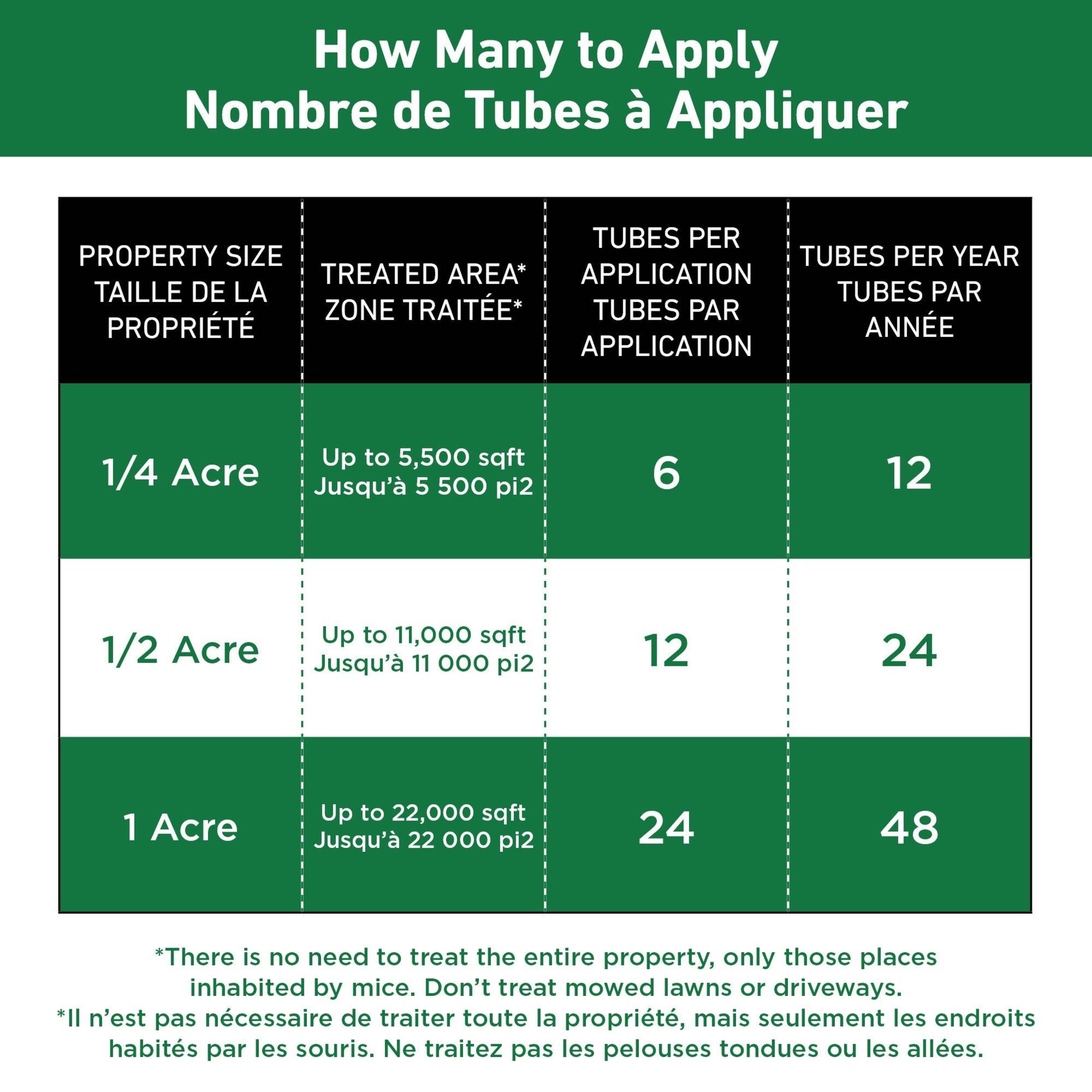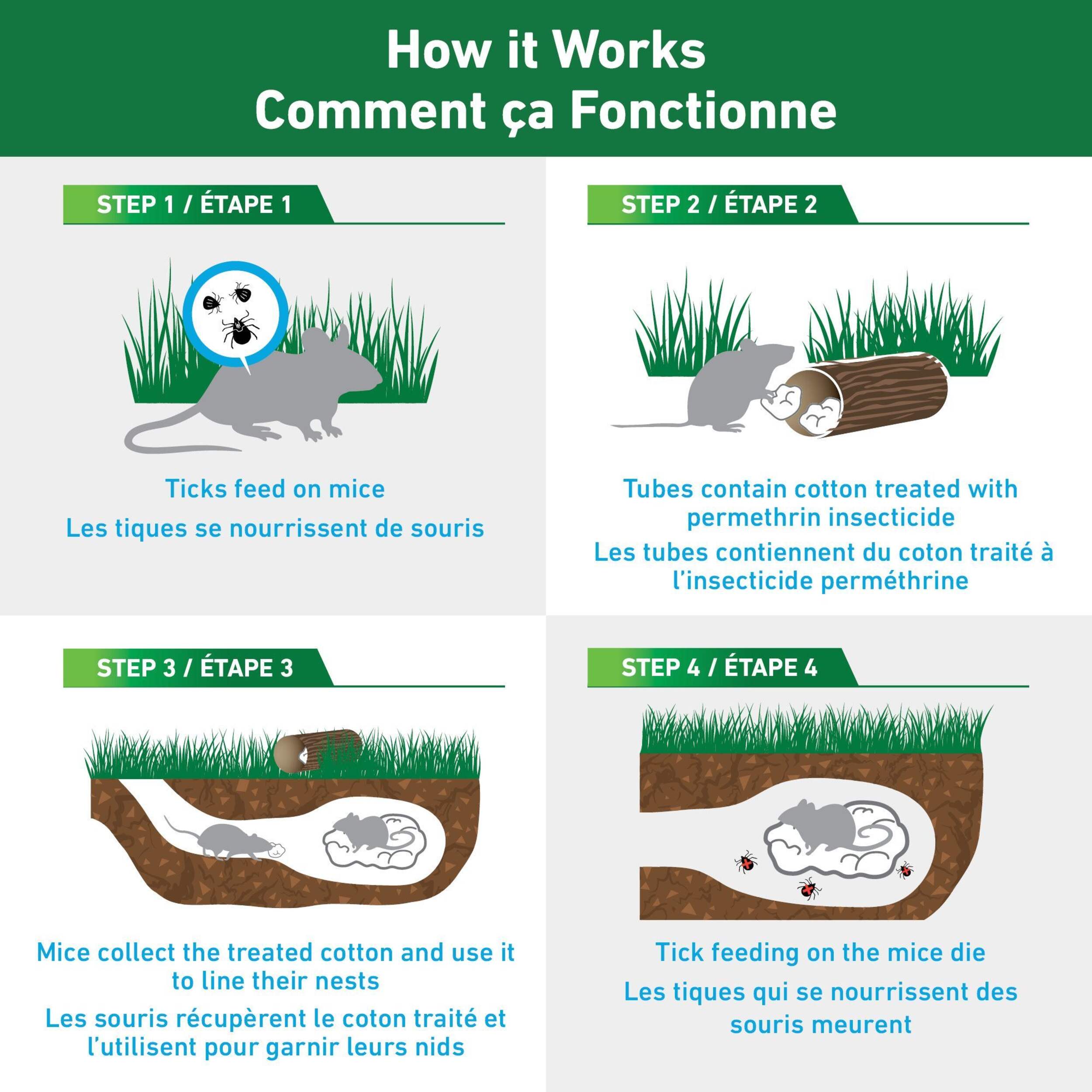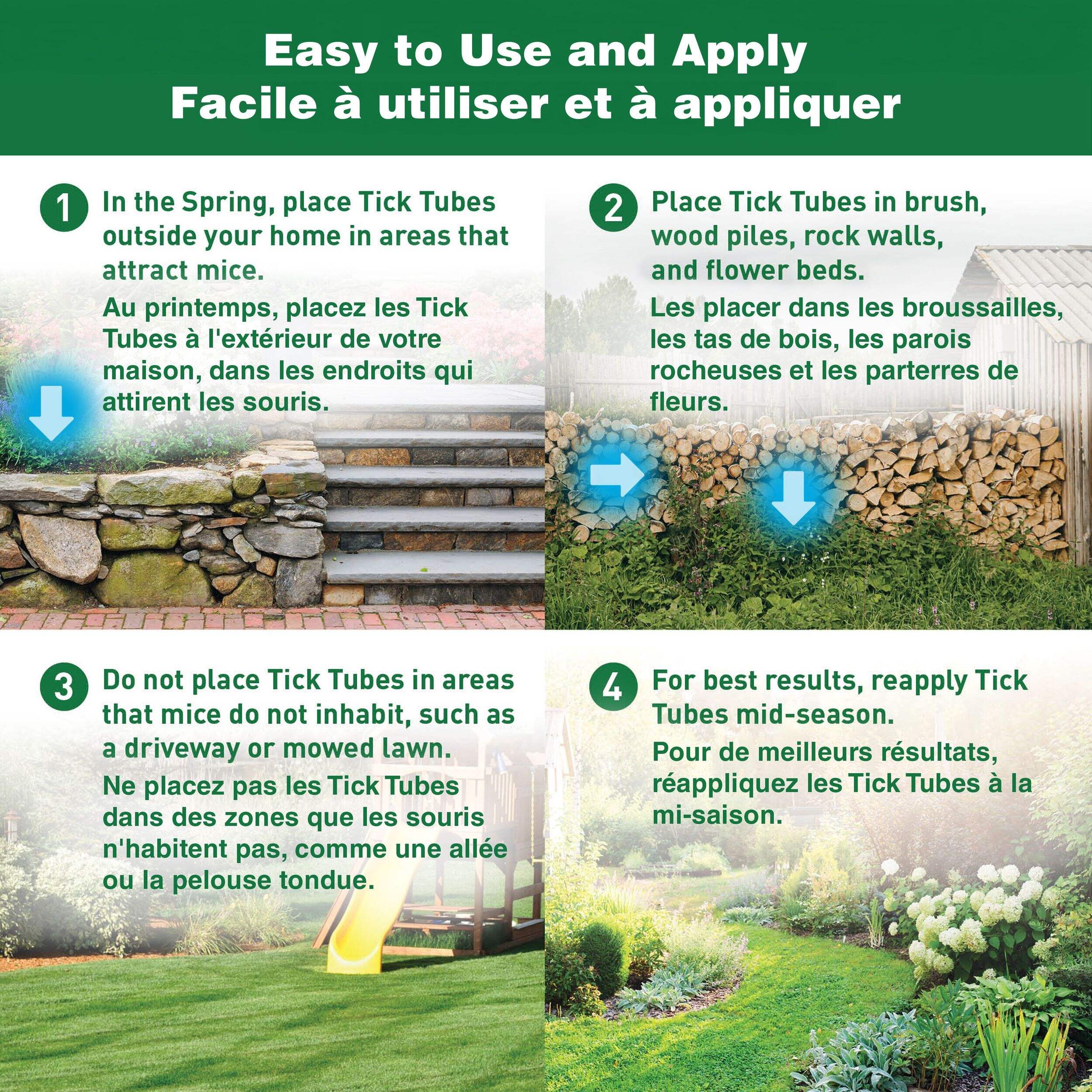 L'utilisation de 6 tubes procure une protection avancée contre les tiques jusqu'à 1/4 acre (1 011 m2) par application