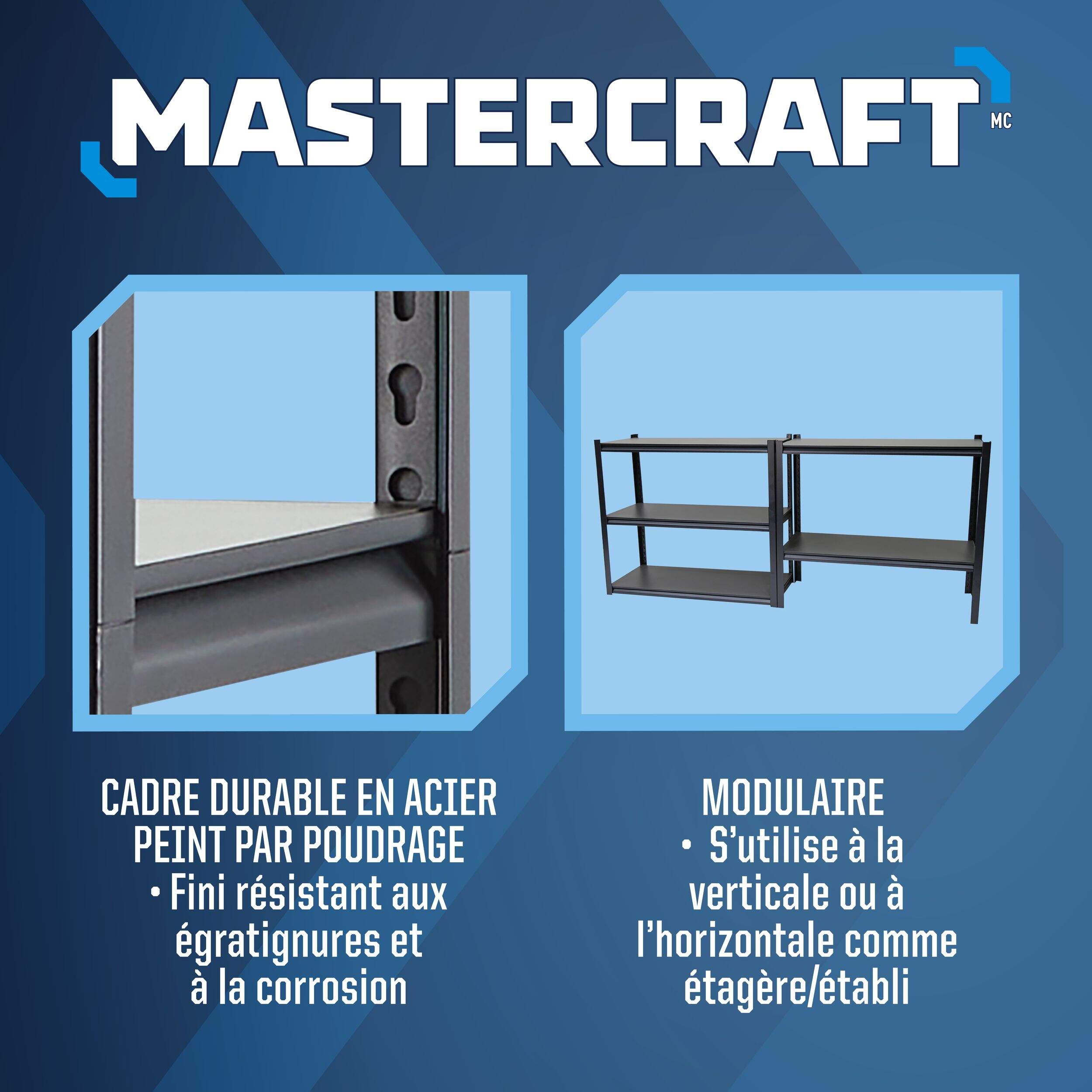 Cette étagère de rangement réglable Mastercraft est un moyen robuste et pratique de désencombrer votre maison ou votre atelier. Cette étagère robuste est modulaire et peut être utilisée à la verticale ou à l'horizontale, selon l'espace dont vous disposez. Elle est dotée de 5 tablettes en bois durable que vous pouvez facilement ajuster pour accueillir une grande variété d'articles. La conception ouverte permet un accès facile tout en offrant amplement d'espace de rangement pour garder les choses bien rangées.