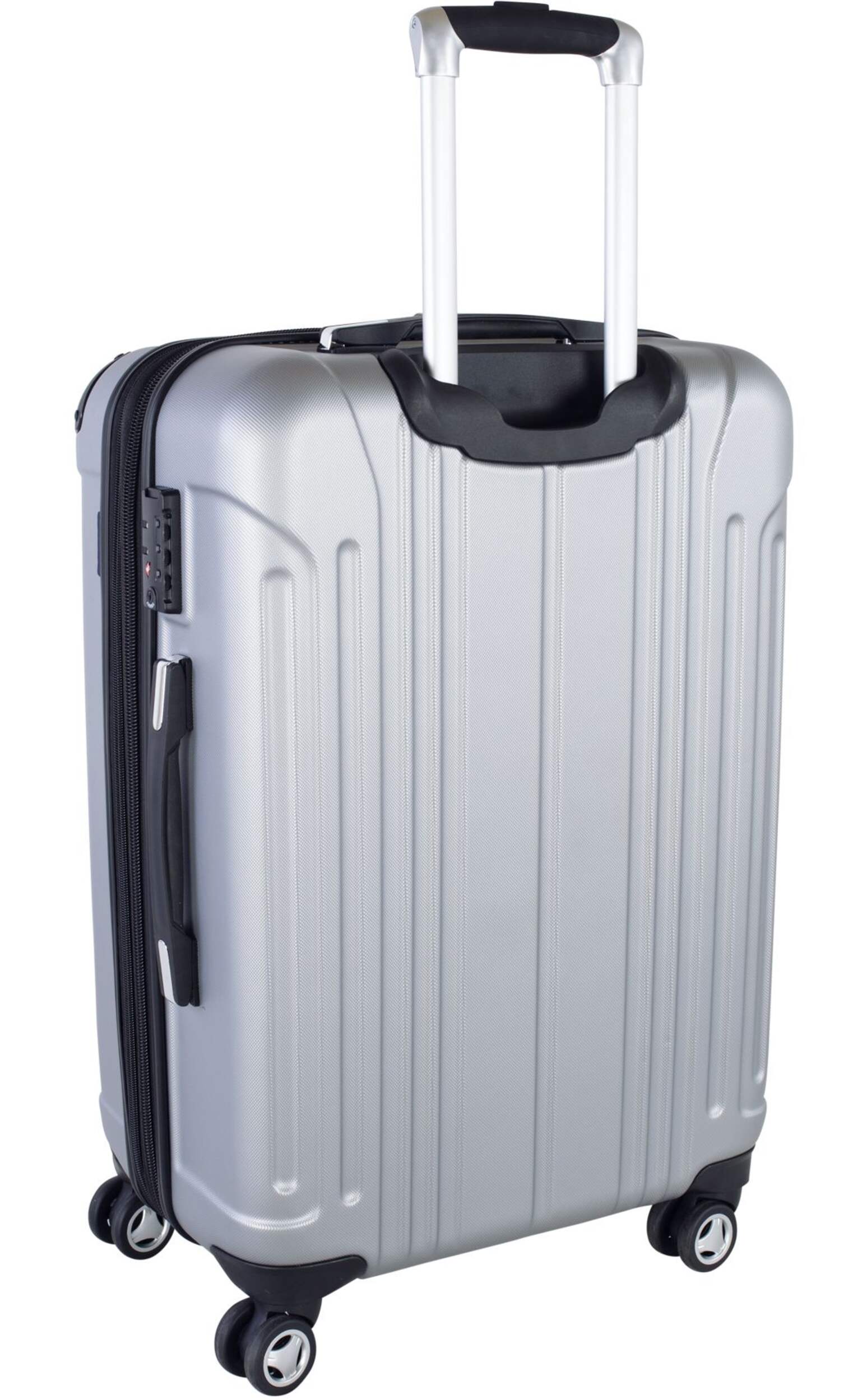 8 roulettes pivotant sur 360 degrés permettant de déplacer facilement la valise dans toutes les directions