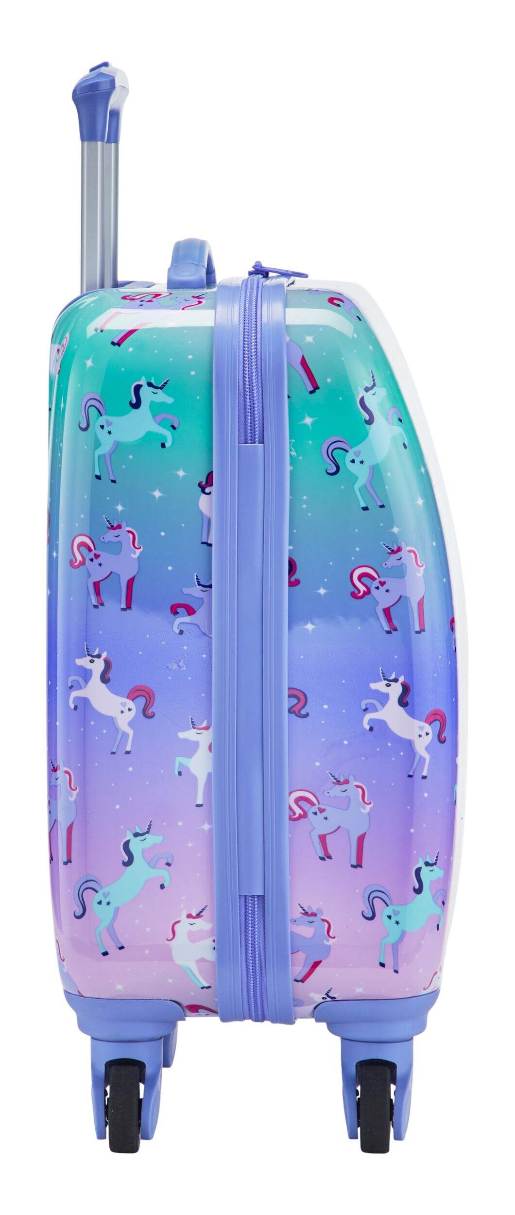 Valise rigide Outbound pour enfants aux motifs de licornes qui est fabriquée d'un mélange de plastique ABS léger et durable et de polycarbonate