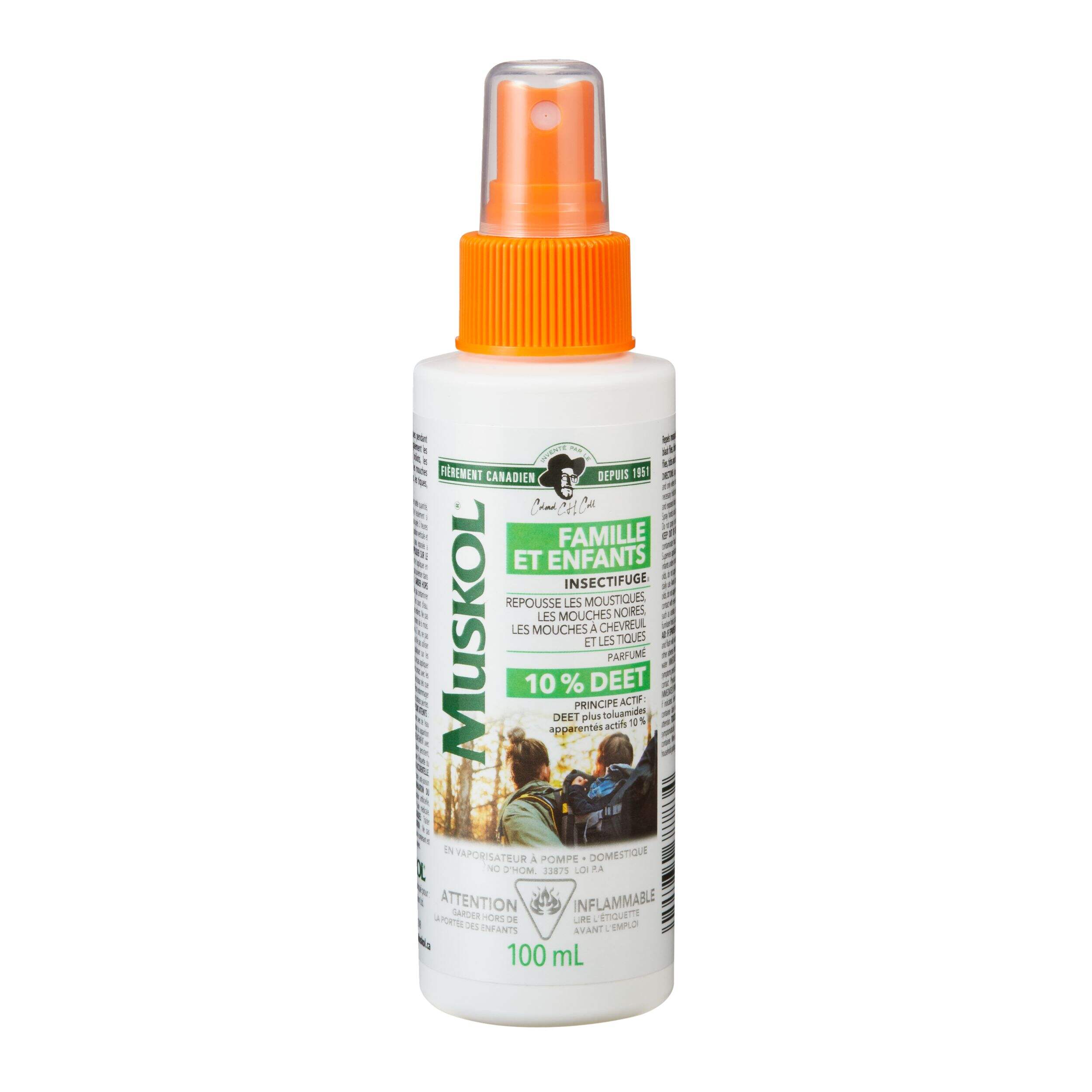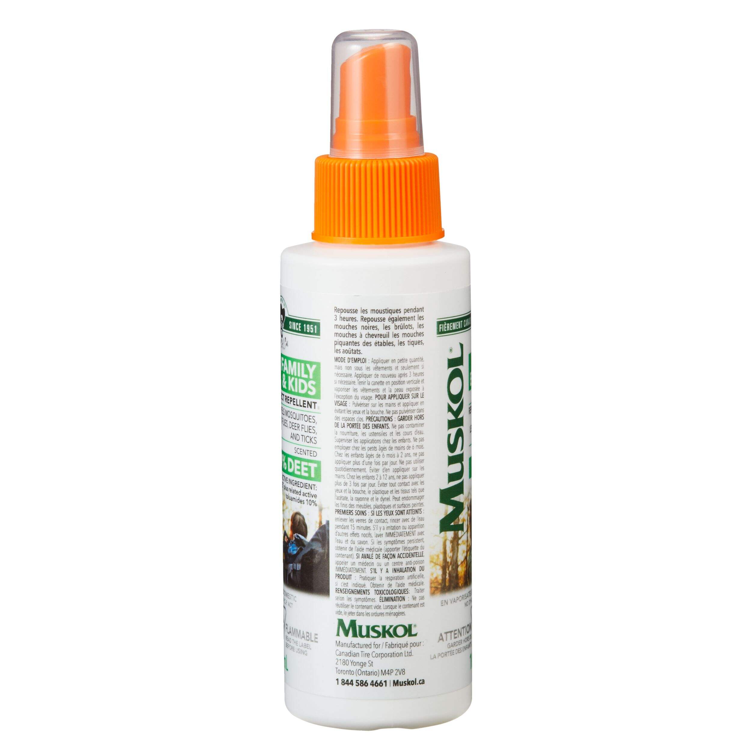 Le vaporisateur d'huile parfumée chasse-moustiques/insectes pour famille et enfants Muskol, offre une protection efficace contre les moustiques, les mouches noires, les mouches à chevreuil et les tiques. Ce chasse-moustiques parfumé repousse les moustiques pendant 3 heures et est un incontournable pour vos séjours en camping et autres aventures en plein air. Ce vaporisateur chasse-moustiques contient des ingrédients actifs avec 10 % de diéthyltoluamide et de toluamides actifs apparentés. Article fièrement fabriqué au Canada.