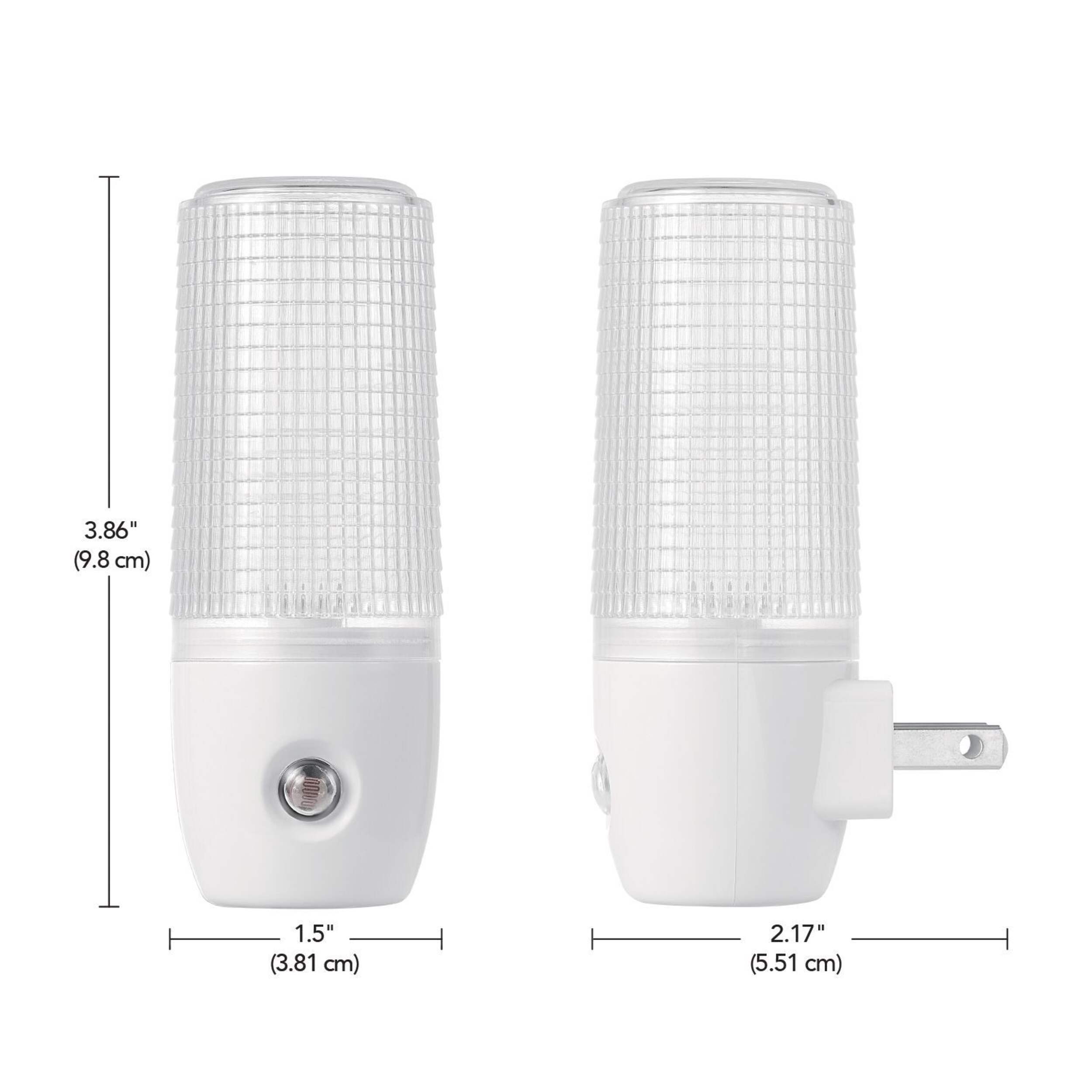 L'ensemble d'éclairage de nuit automatique à DEL du crépuscule à l'aube de Globe Electric est un moyen parfait d'éclairer votre maison la nuit. Complété par 2 veilleuses cylindriques, il vous permet d'éclairer votre espace en toute simplicité. La forme cylindrique permet d'obtenir une lumière douce et homogène. La fonction automatique de crépuscule à l'aube permet de n'éclairer que lorsque vous en avez besoin, ce qui vous permet d'économiser du temps et de l'énergie. Avec une température de couleur de 5 000 kelvins, votre espace sera toujours bien éclairé. Les DEL intégrées restent froides au toucher et constituent le choix idéal en matière d'économie d'énergie.