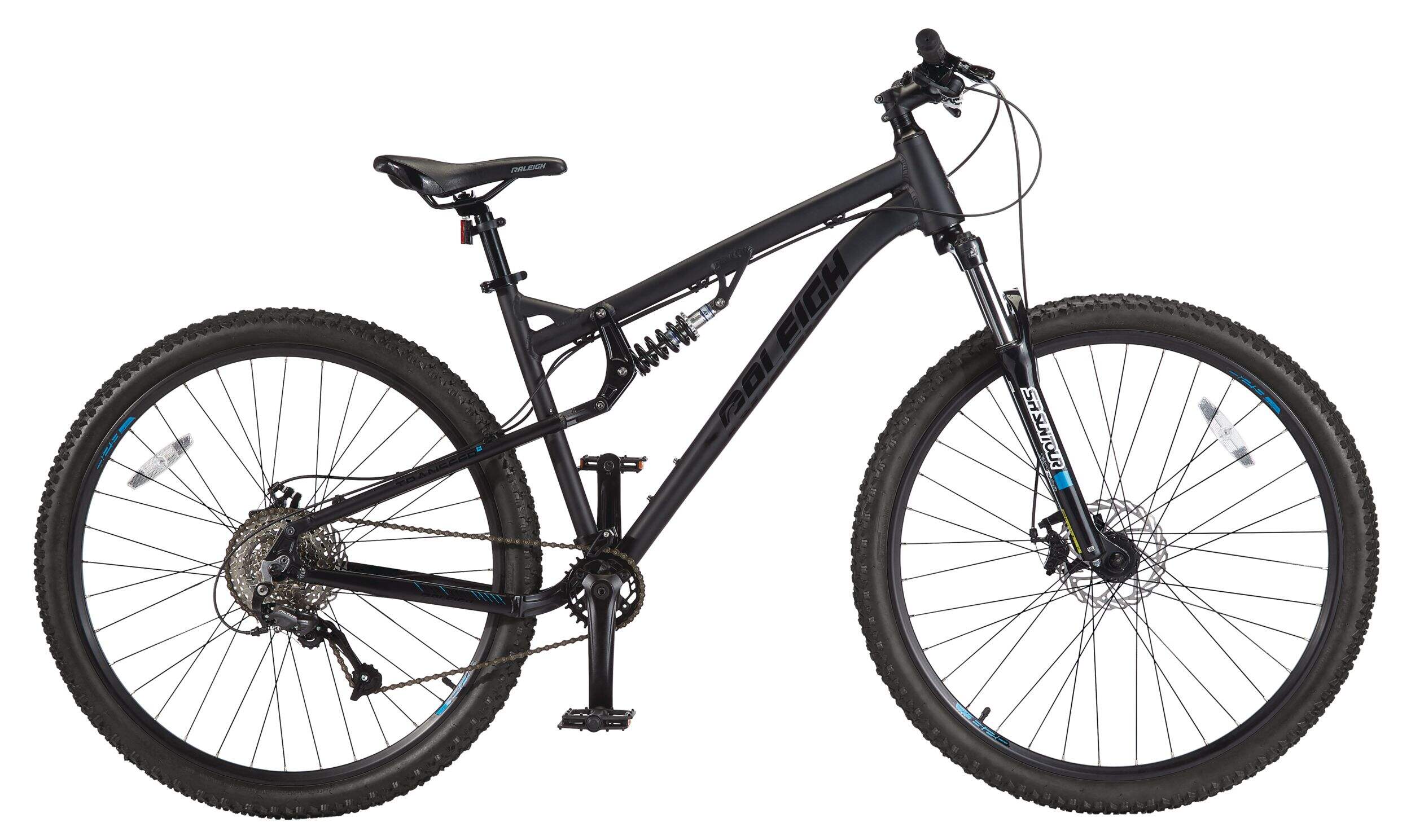 Le vélo Raleigh Attack est le meilleur vélo de montagne à double suspension de la gamme Raleigh. Il est doté d'un système de changement de vitesse Shimano 1 x 8 qui comprend une manette de vitesses Altus, un dérailleur et une Cassette Sunrace lisse et précise, sans dérailleur avant à ajuster et à maintenir. La suspension avant Suntour en alliage légère absorbe les chocs avec grande facilité. Les freins à disque en alliage haut de gamme sont fiables afin d'avoir un freinage rapide et précis dans toutes les conditions. Doté de caractéristiques de qualité, y compris des moyeux en alliage léger Joytech, des jantes double paroi en alliage robuste, un pédalier Prowheel Charm, un guidon surdimensionné en alliage, une potence et une selle en alliage avec collier intégré, ce vélo est le meilleur de sa catégorie.