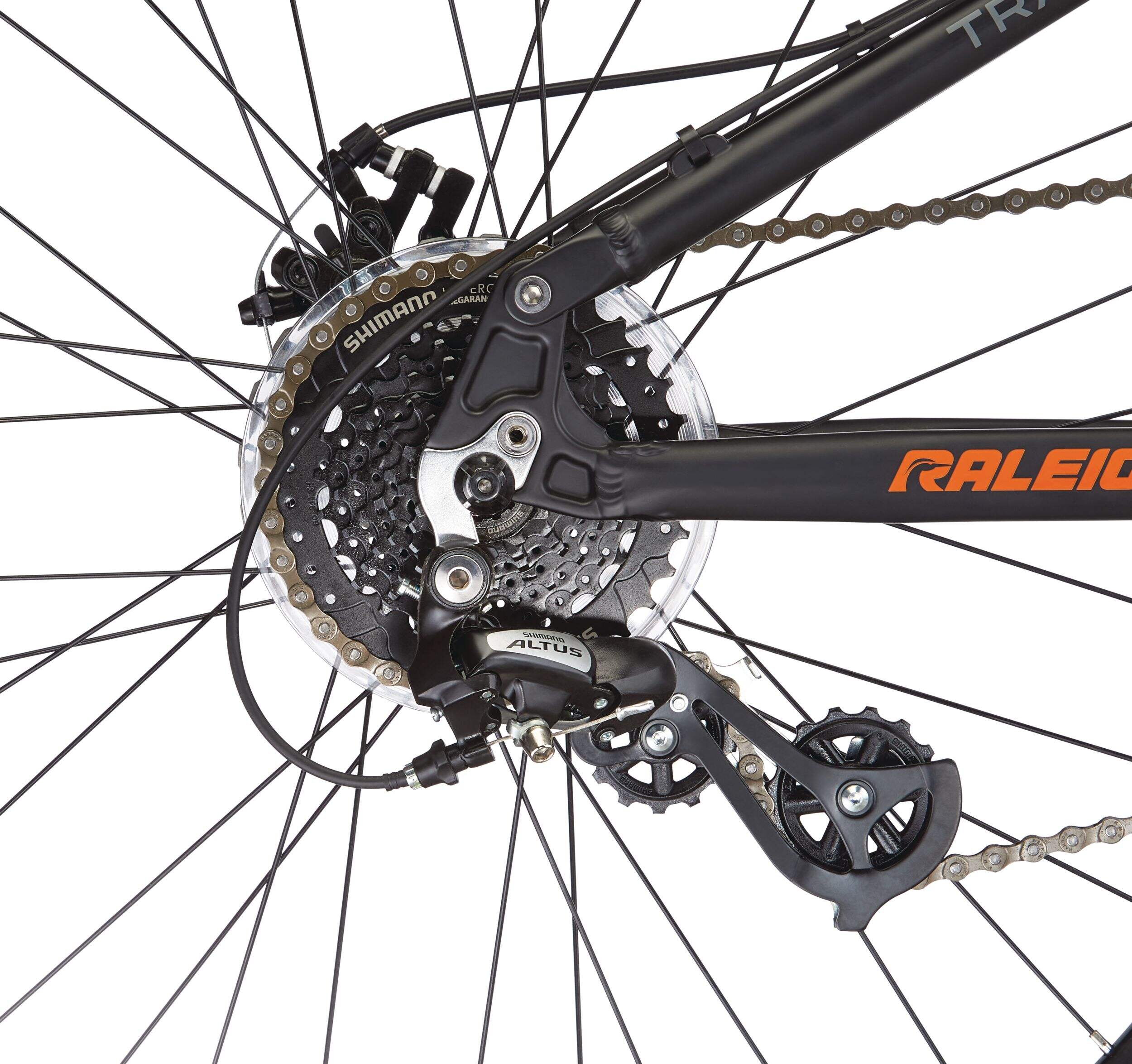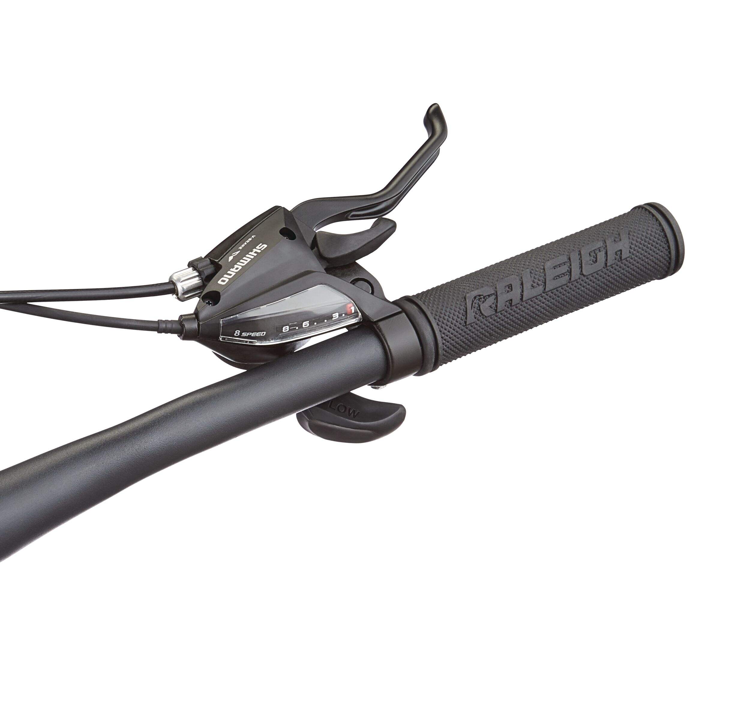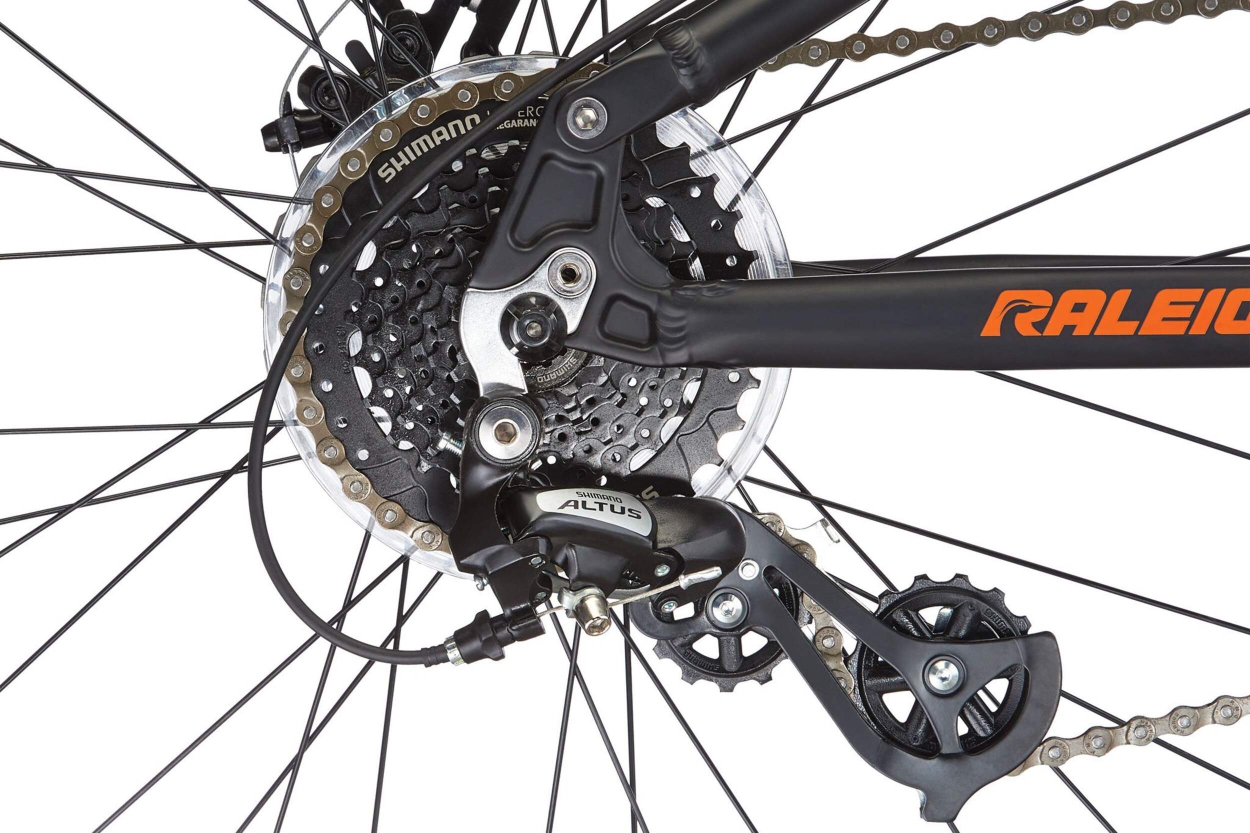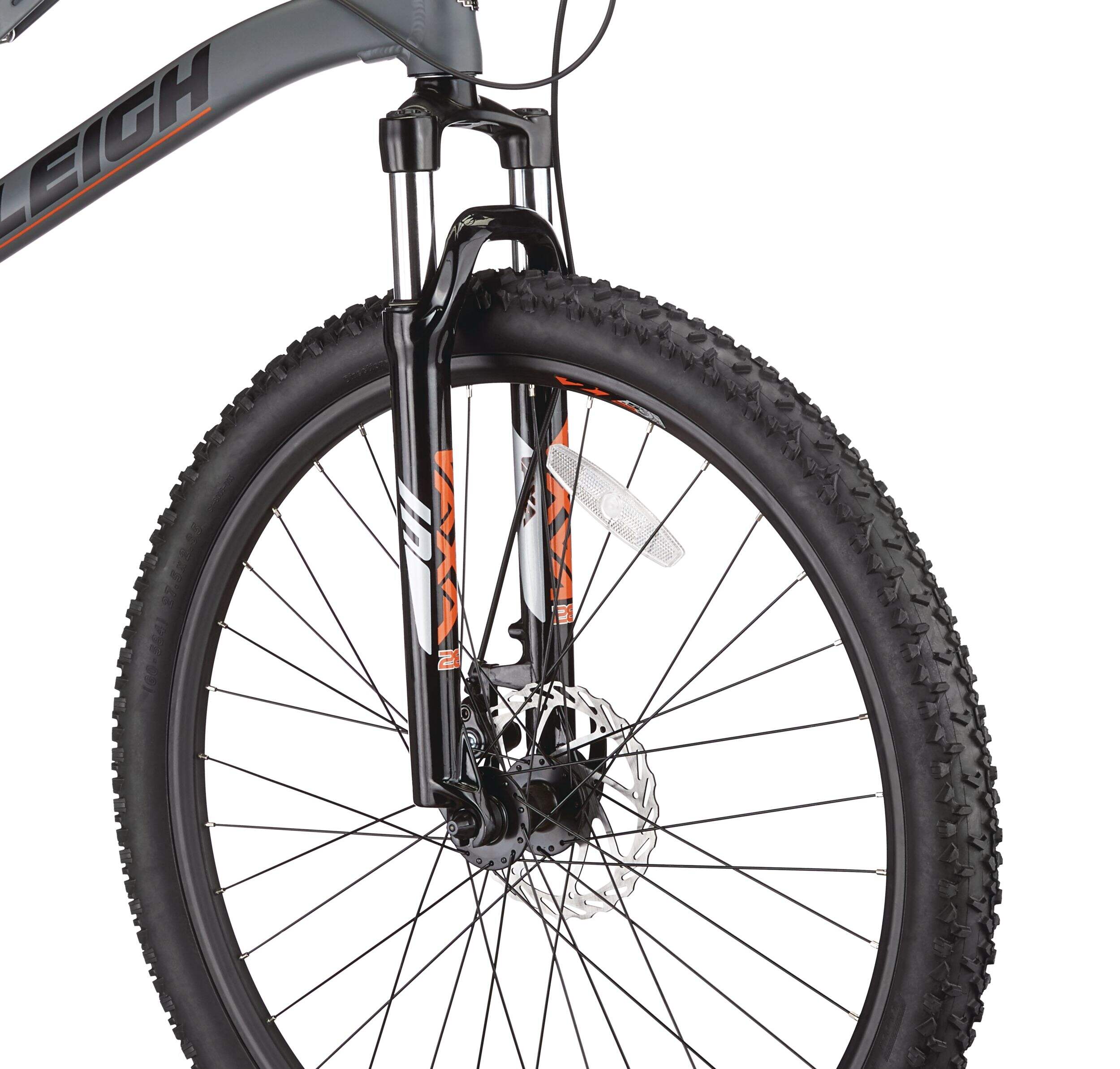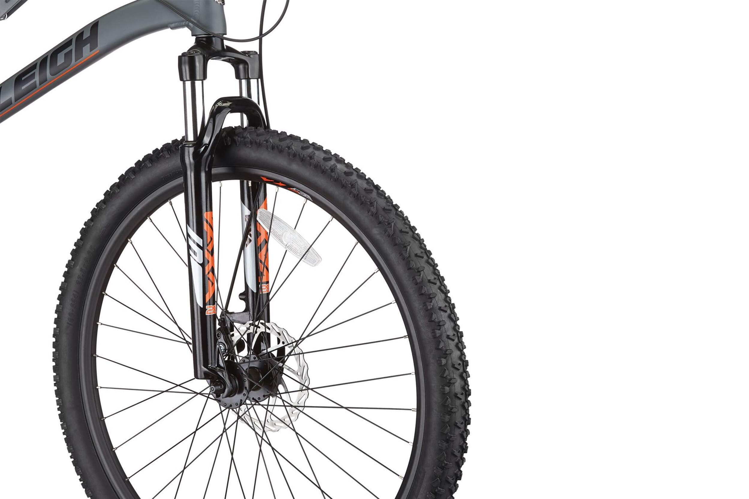 Parcourez les sentiers avec le vélo de montagne Raleigh Peak à double suspension, conçu pour la performance et la précision. Son système Shimano à 24 vitesses, doté de manettes de vitesses EZ Fire EF500 et d'une cassette Shimano, permet des changements de vitesses fluides et précis. La suspension avant légère en alliage VAXA absorbe facilement les chocs pour assurer un roulement confortable, tandis que les freins à disque en alliage fiables offrent une puissance de freinage fiable dans toutes les conditions. Les composants de qualité tels que les moyeux en alliage léger et les jantes à double paroi durables se combinent pour offrir une conduite aussi fiable qu'exaltante.
