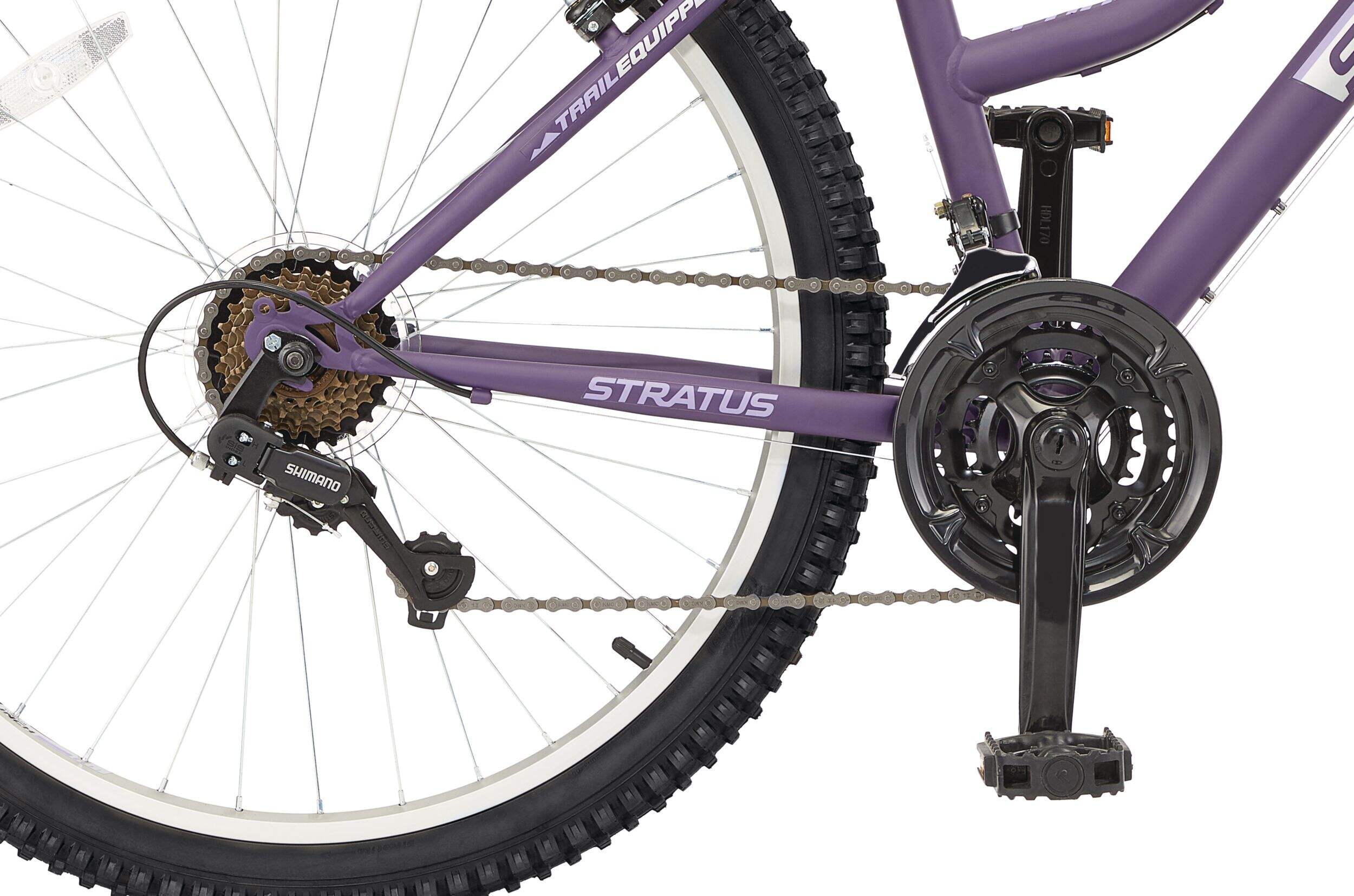 Le vélo de montagne Stratus Phaser à suspension avant de 26 po est conçu pour les cyclistes qui aiment tant les sentiers que les randonnées urbaines. Équipé d'une manette de changement de vitesse tournante à 21 vitesses et d'un dérailleur Shimano, ce vélo offre des transitions fluides des engrenages sur divers types de terrains. Sa fourche à suspension avant absorbe les chocs sur les trajectoires inégales pour assurer un roulement confortable et maîtrisé. Doté de freins en V fiables à l'avant et à l'arrière et de jantes en alliage légères, le Stratus Phaser est conçu pour la stabilité et la performance, ce qui le rend idéal pour le vélo récréatif et l'aventure.