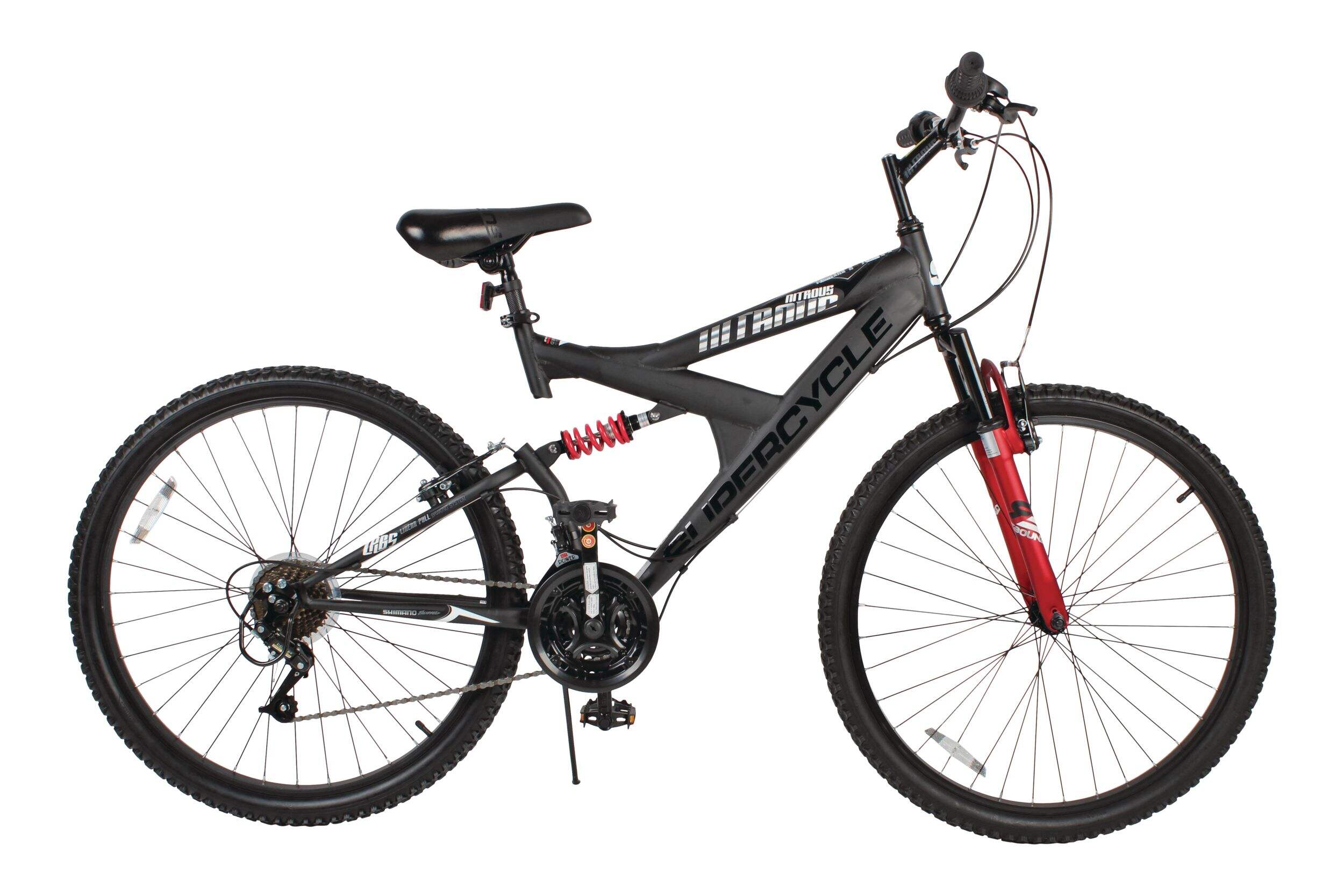 Le vélo de montagne Supercycle Nitrous à double suspension est conçu pour s'adapter facilement à une grande variété de terrains, offrant ainsi une tenue de route confortable et contrôlée. Son modèle dynamique et sa tenue de route réactive en font un choix fiable pour les aventures en plein air, tandis que sa configuration adaptable permet aux cyclistes de personnaliser leur expérience. Son système de freinage robuste renforce la sécurité, ce qui le rend idéal tant pour les sentiers accidentés que pour les chemins lisses.