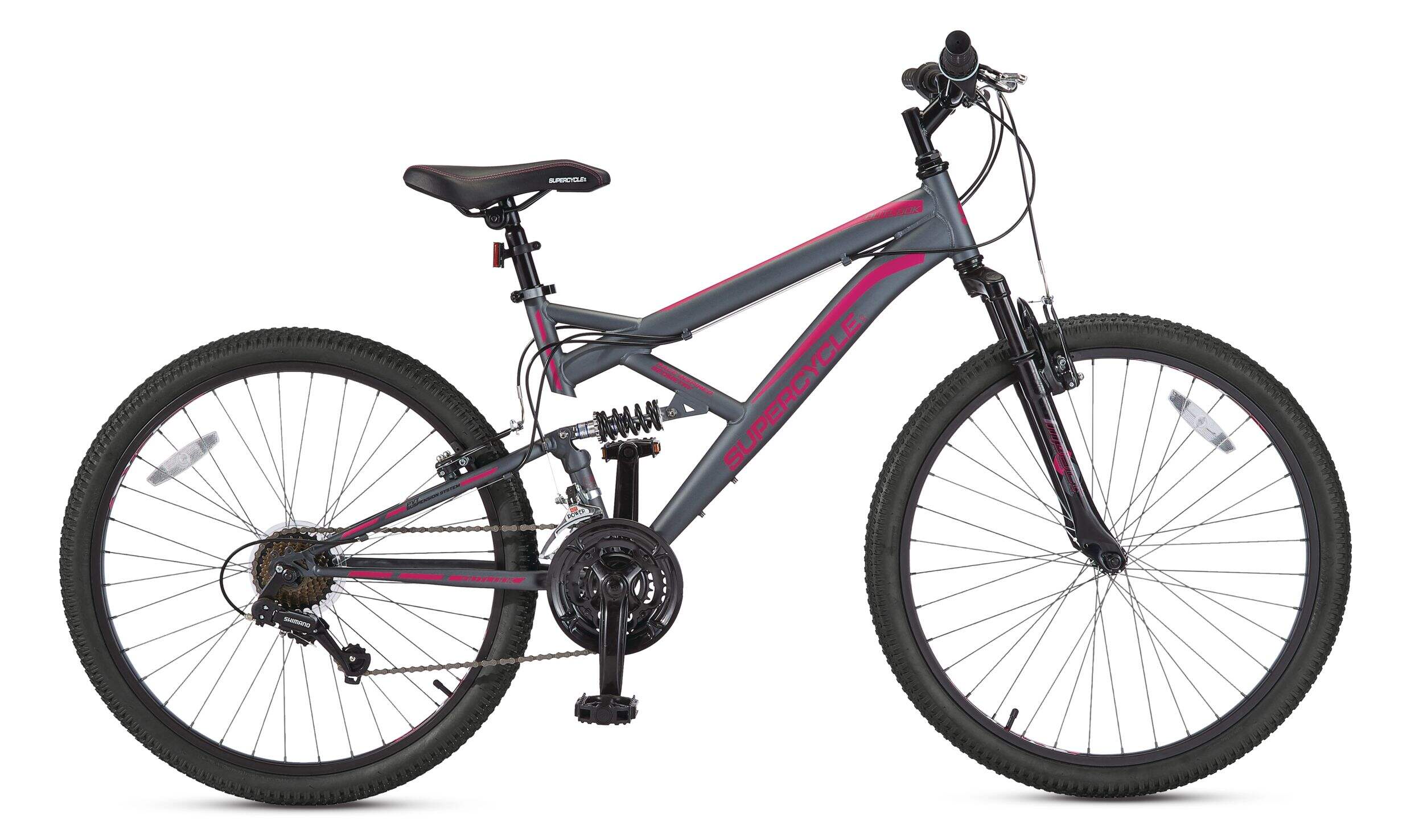 Le vélo de montagne à double suspension Supercycle Outlook est conçu pour les sentiers accidentés, offrant une conduite fluide et stable même sur les terrains difficiles. Son cadre robuste et son système à suspension avancée améliorent le confort et le contrôle sur les chemins cahoteux et accidentés, ce qui en fait un choix idéal pour les explorations en plein air. Grâce à ses couleurs élégantes, ce vélo apporte un esprit athlétique expressif qui ajoute du style à chaque aventure hors route, alliant fonctionnalité et profil accrocheur.