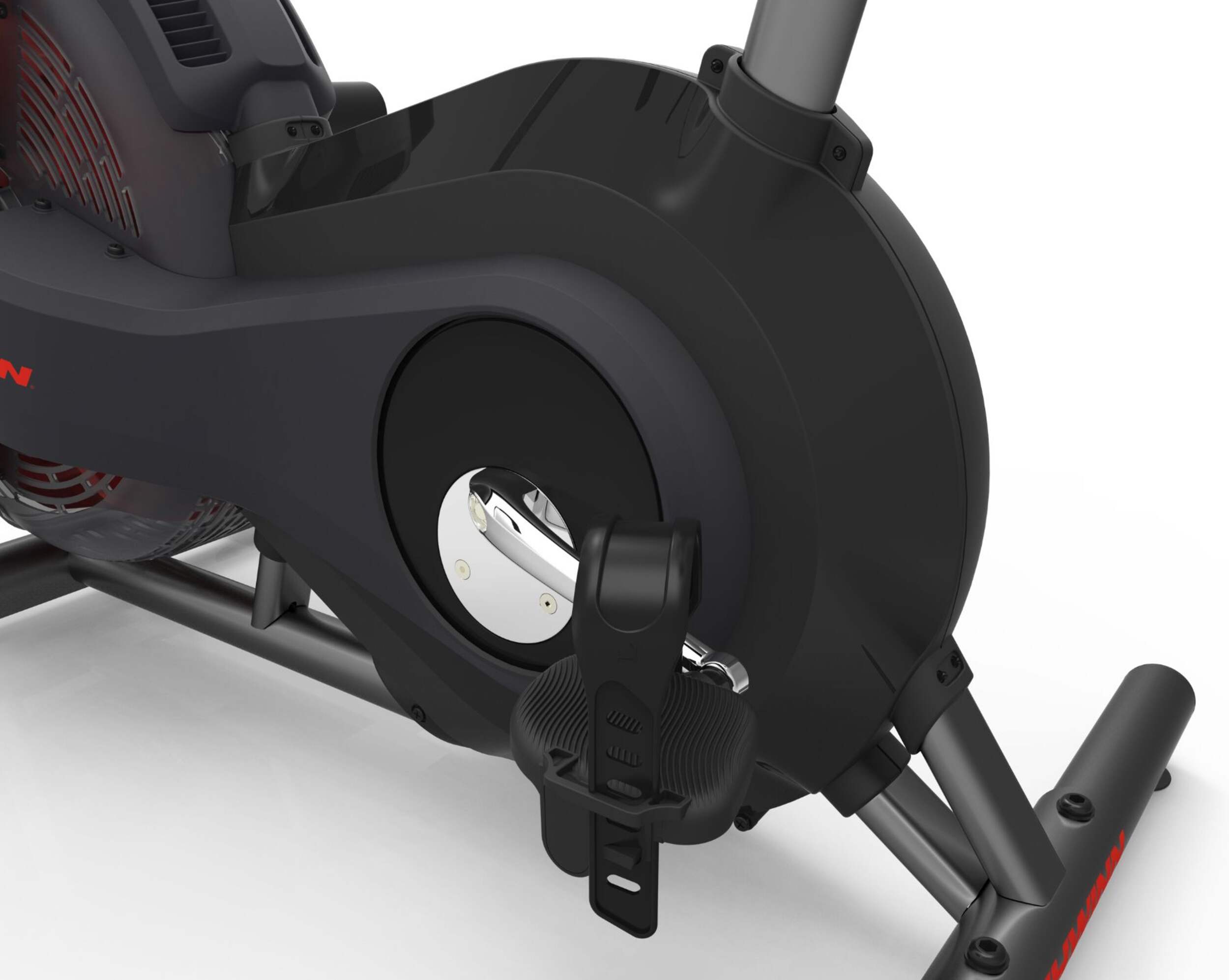 Basculez le vélo sur les roulettes de devant pour un rangement rapide et facile entre les périodes d’entraînement