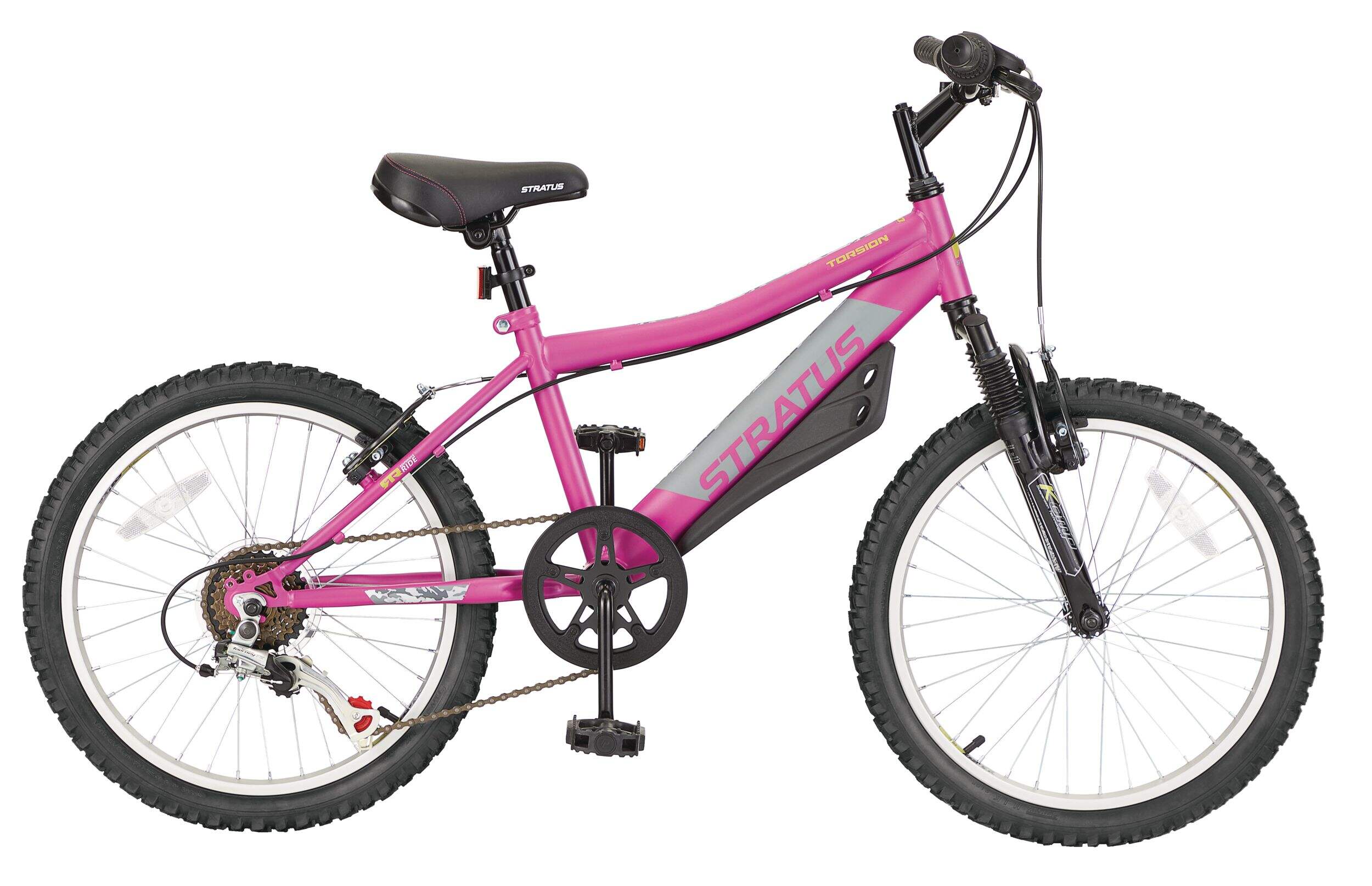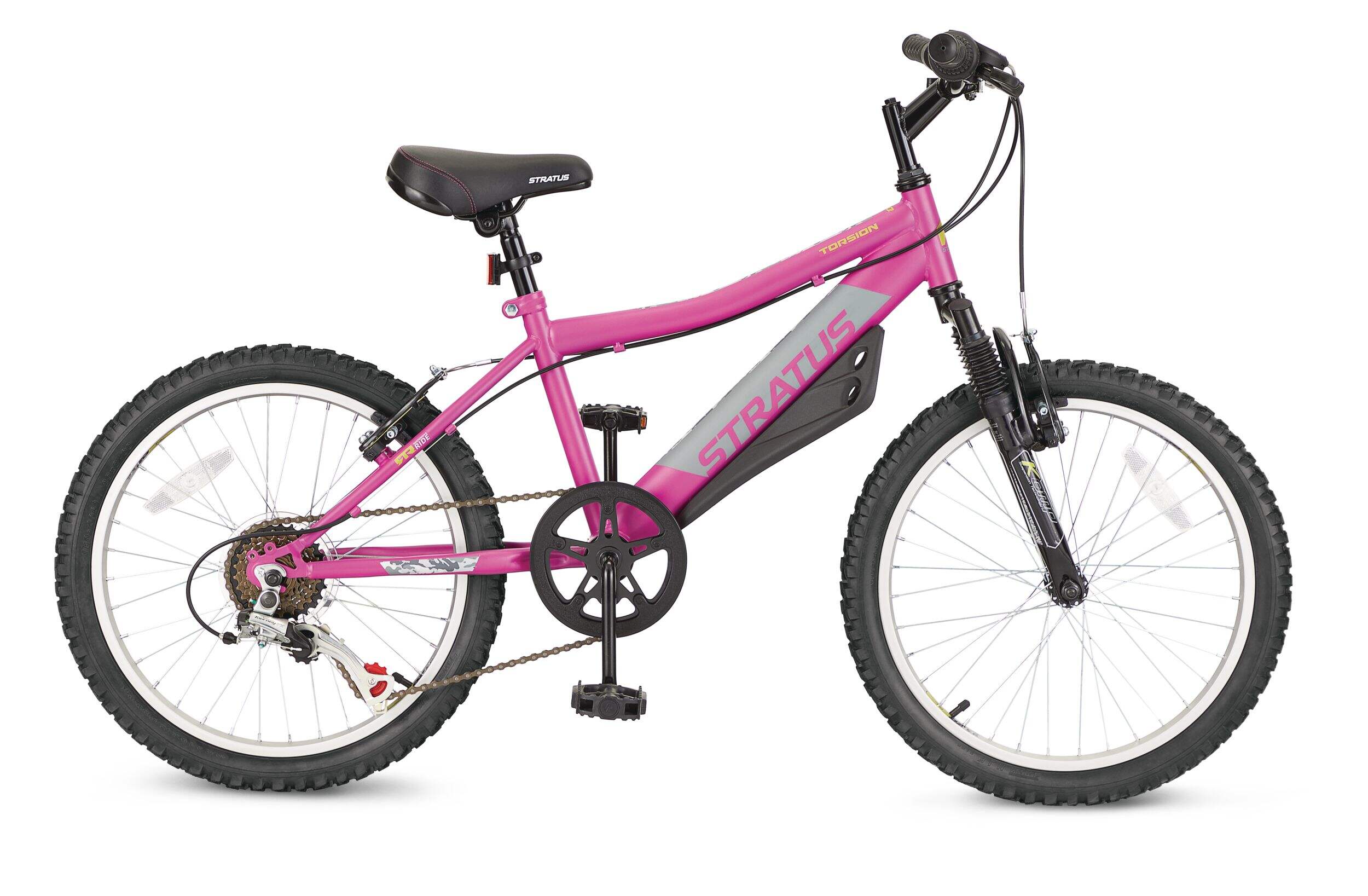 Le vélo Stratus Torsion pour enfants offre aux jeunes cyclistes un mélange parfait de performance et de style. Son cadre incliné facile à monter est pratique, tandis que la fourche à suspension avant absorbe les chocs pour une conduite plus douce. Le système de changement de vitesses Shimano Revo à 6 vitesses facilite les transitions de vitesses, et les freins en V avant et arrière offrent une puissance de freinage fiable. Conçu pour les enfants de 7 à 13 ans, ce vélo encourage la confiance et l'aventure.