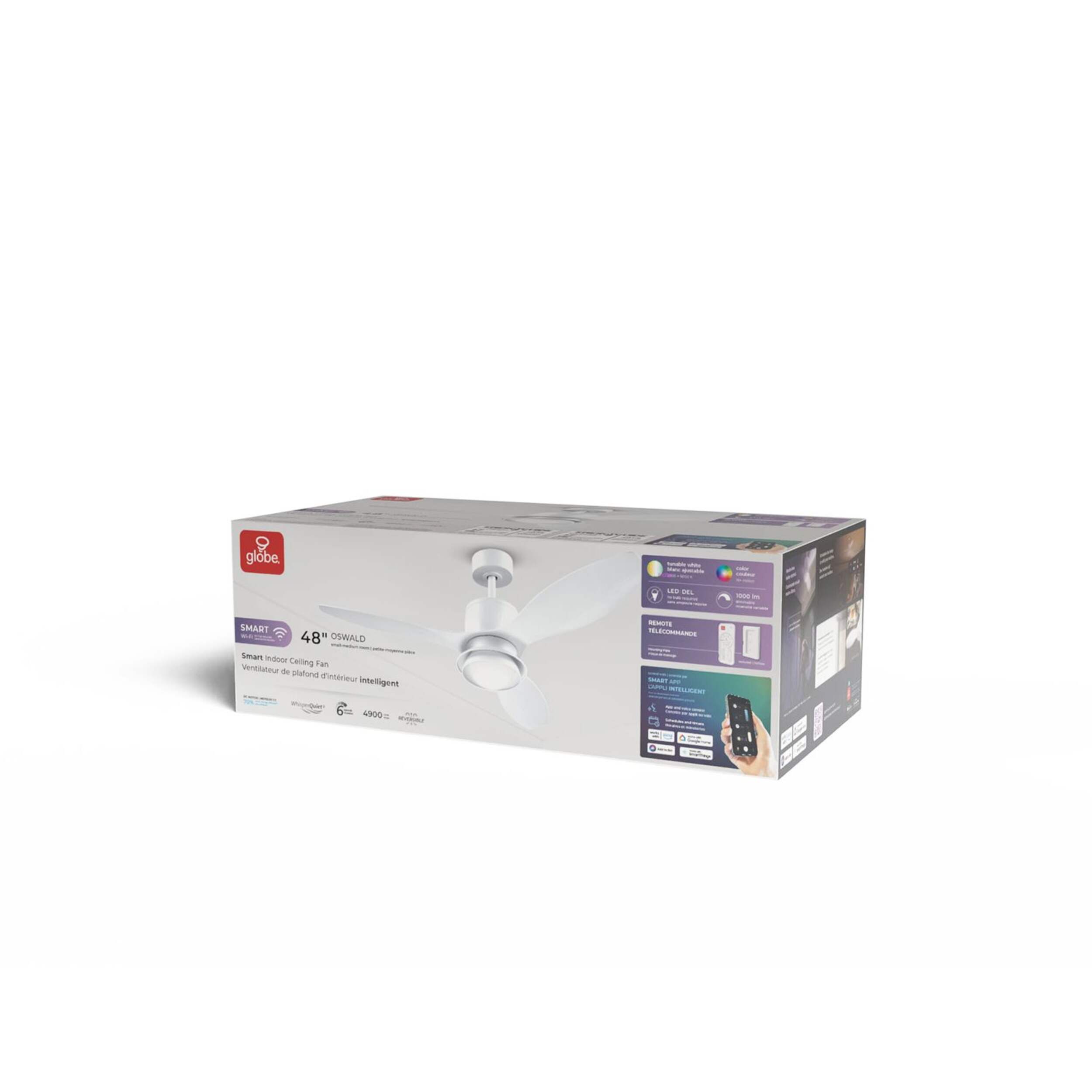 Programmez des minuteries, contrôlez la vitesse et la direction du ventilateur et personnalisez les réglages d'éclairage sans effort avec l'application Globe Smart de Globe Electric