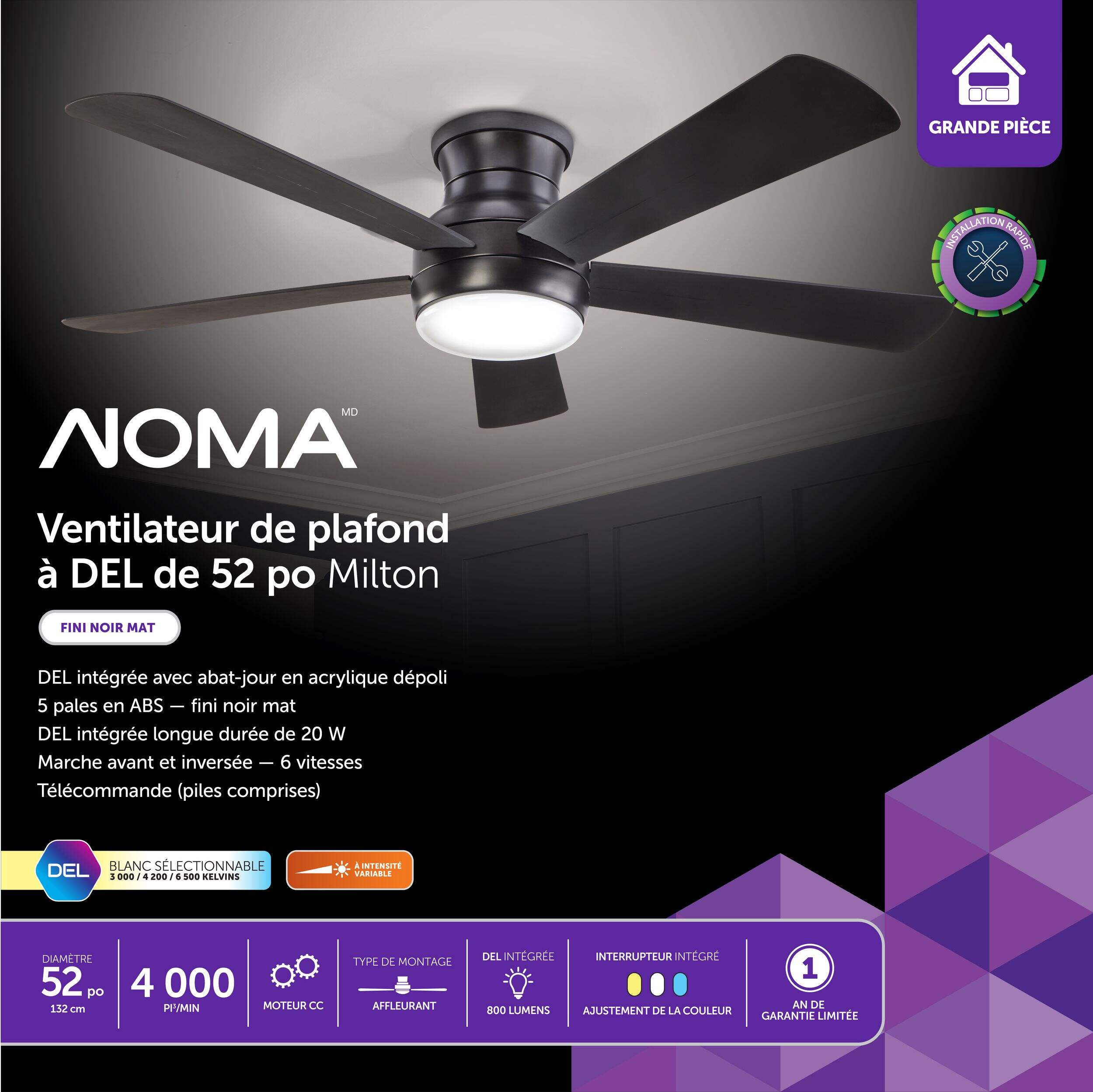 Ventilateur de plafond NOMA Milton de 52 po pour ajouter de la fonctionnalité et du style à n'importe quelle pièce de votre maison.