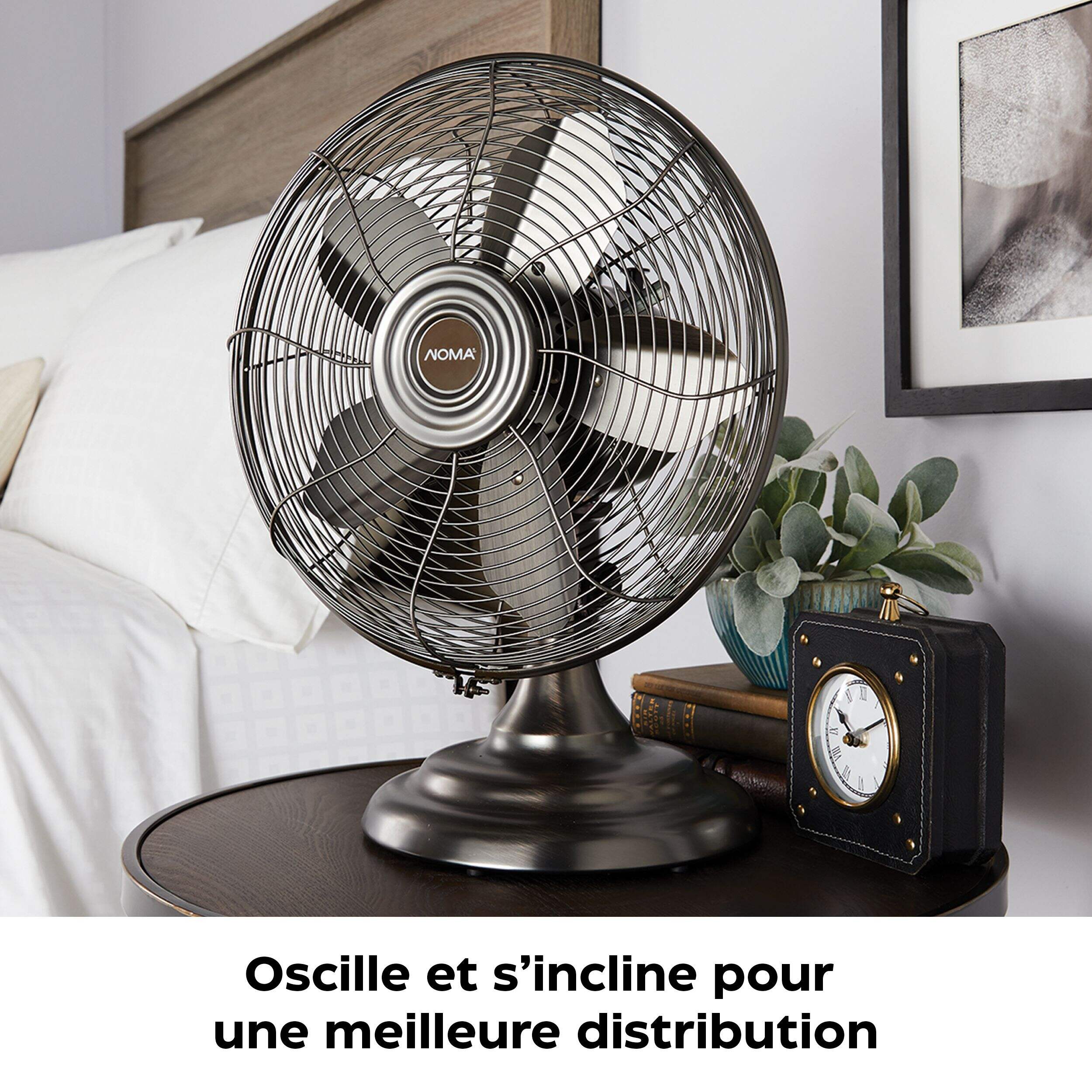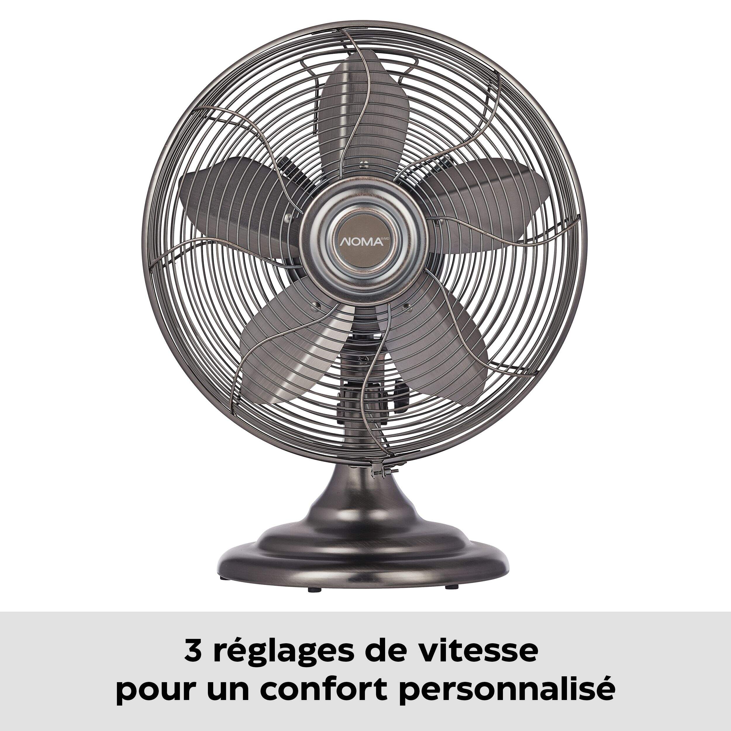 Le ventilateur de bureau oscillant portatif NOMA Retro combine style rétro et performance moderne pour vous aider à garder votre espace confortable. Sa conception élégante entièrement en métal ajoute une touche de charme rétro, ce qui en fait un ajout fonctionnel et élégant à n'importe quelle pièce. Idéal pour le travail et la détente, il produit une brise rafraîchissante dans les bureaux, les chambres à coucher et les salons. Ce ventilateur élégant vous aide à améliorer votre confort toute la journée ou la nuit.