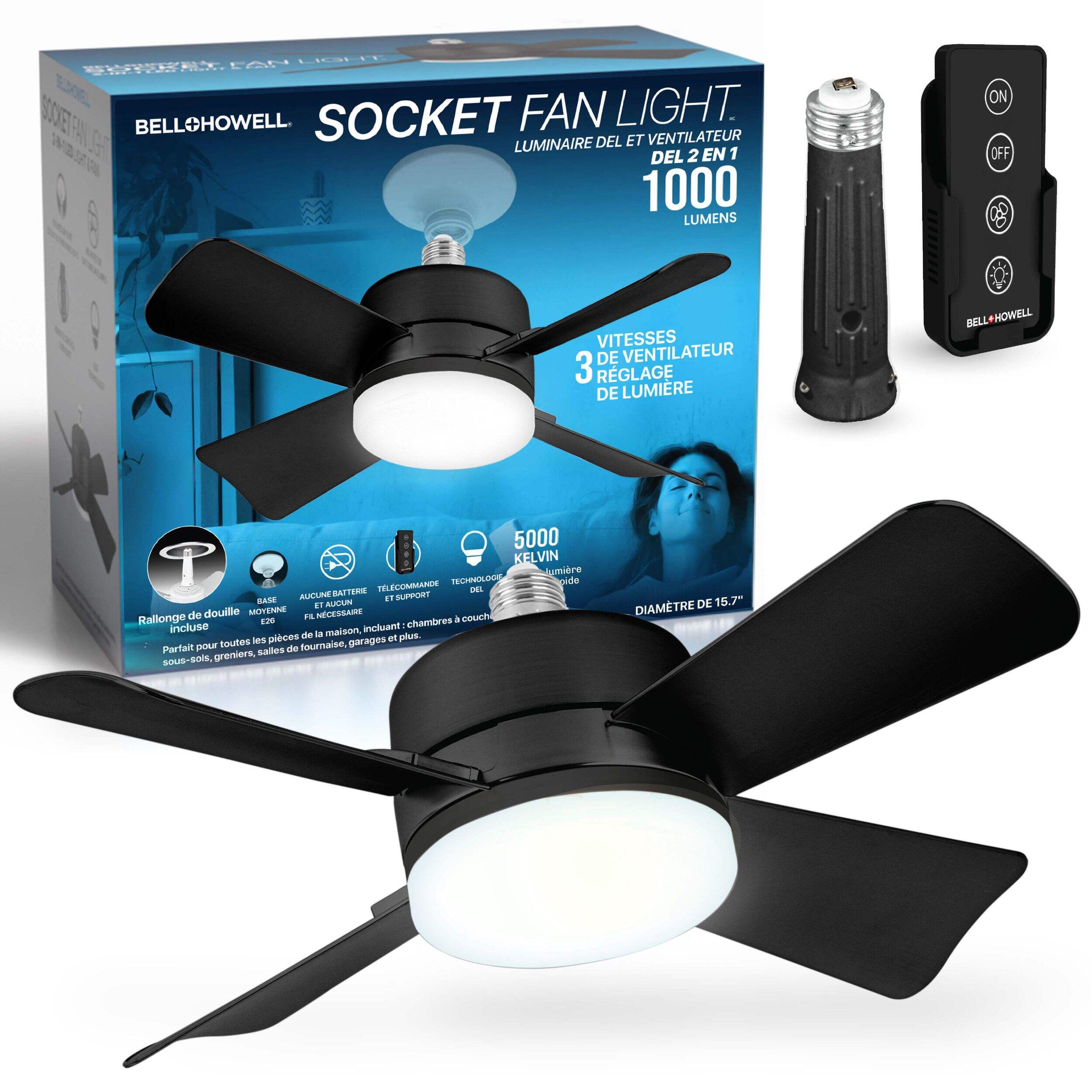 Ventilateur à douille constitué d'un ventilateur de plafond et d'une ampoule DEL très brillante, tout-en-un