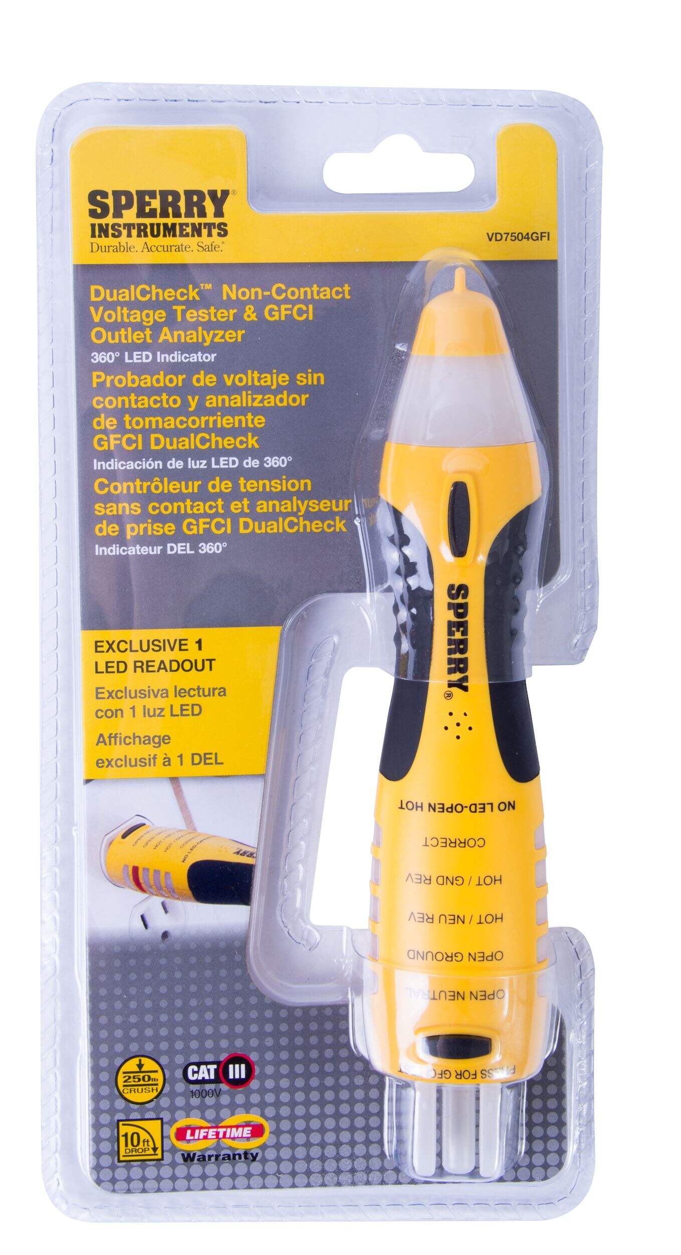 Vérificateur 2-en-1 Sperry VD7504GFI DualCheck, détecteur de voltage sans contact 50 à 1 000 V CA, analyseur de prise GFCI