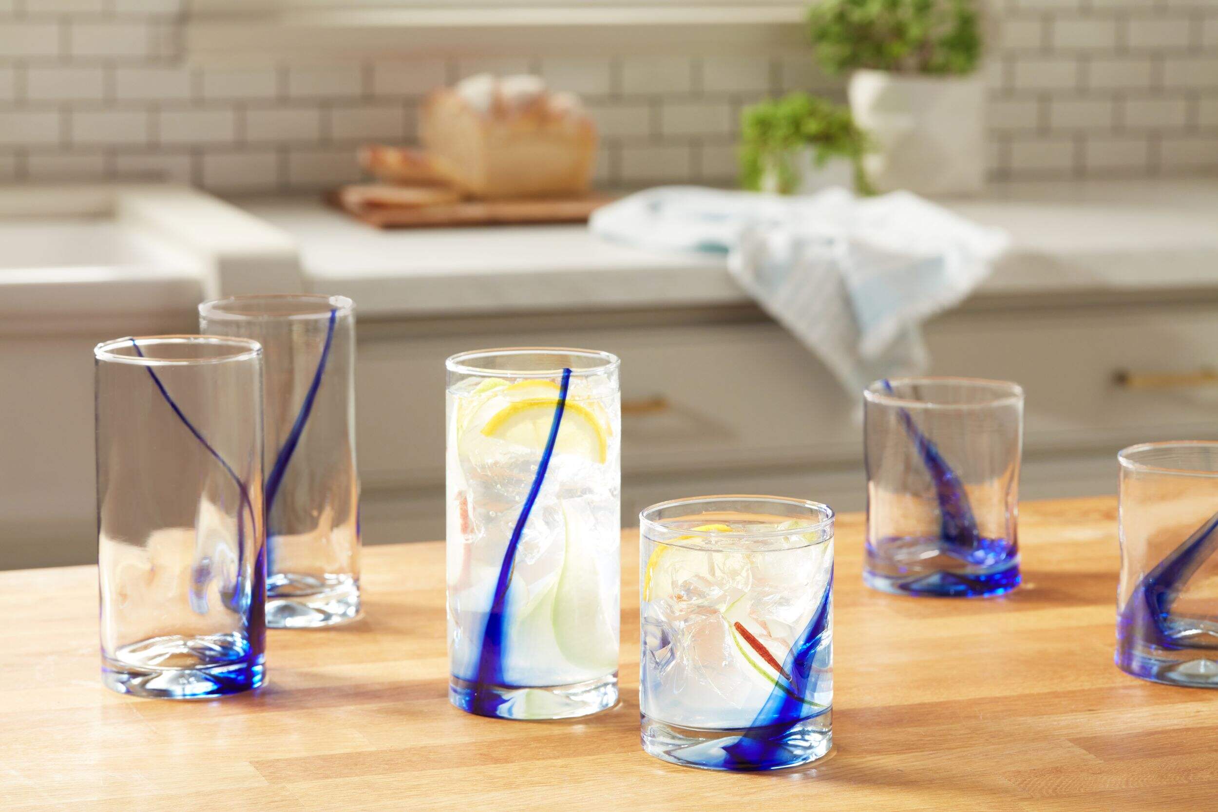 L'ensemble polyvalent de verres Impressions Blue Ribbon 16 pièces de Libbey, lavable au lave-vaisselle, fait bonne impression grâce à ses encoches faciles à saisir et à sa bande bleue éclatante. Il s'agit d'un excellent rapport qualité-prix avec 8 gobelets et 8 verres à pied, tous durables, à la mode et prêts à accueillir vos boissons rafraîchissantes. L'ensemble multitaille est idéal pour les ménages familiaux, avec une forme alvéolée qui est facile à tenir pour tous les âges.