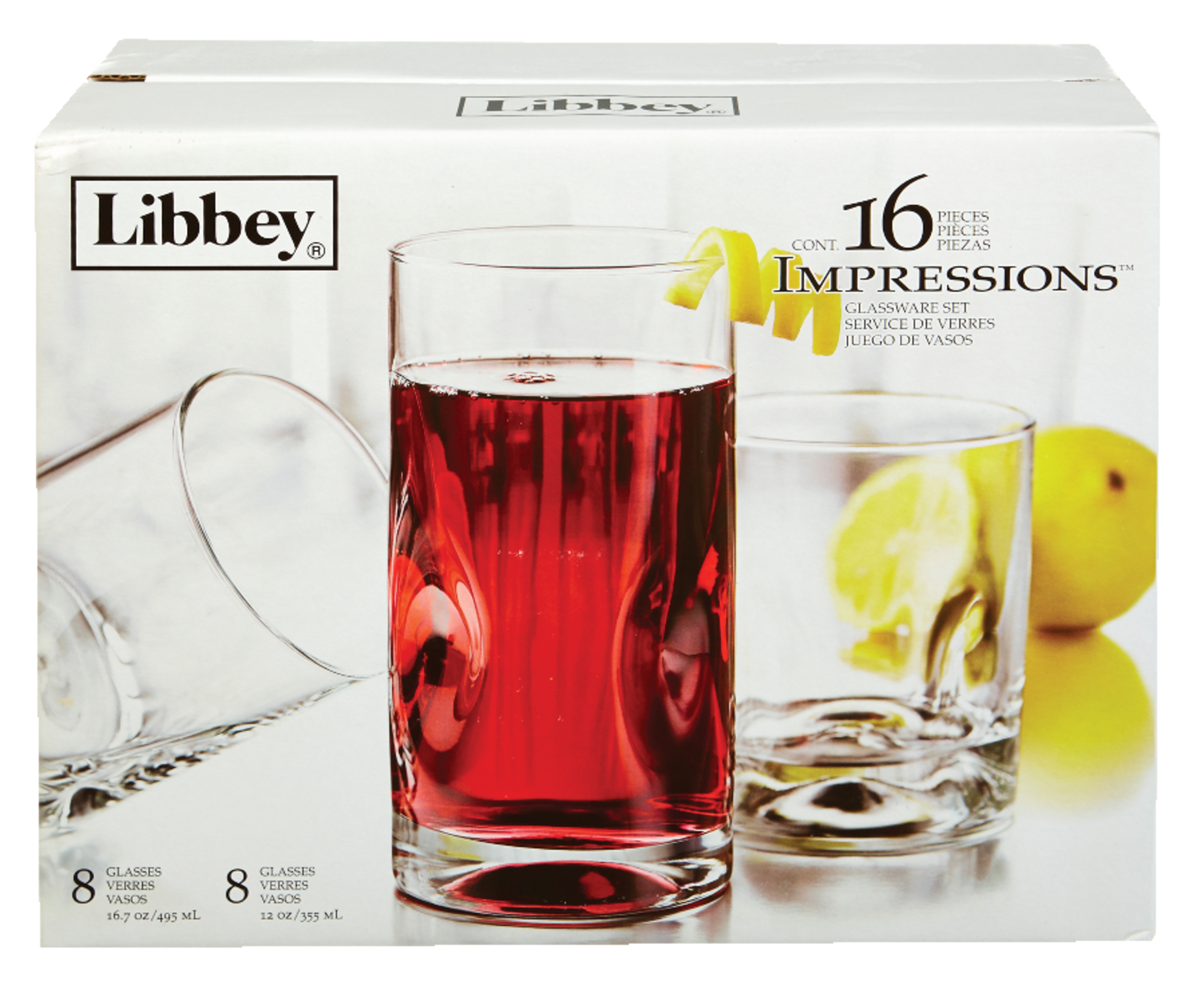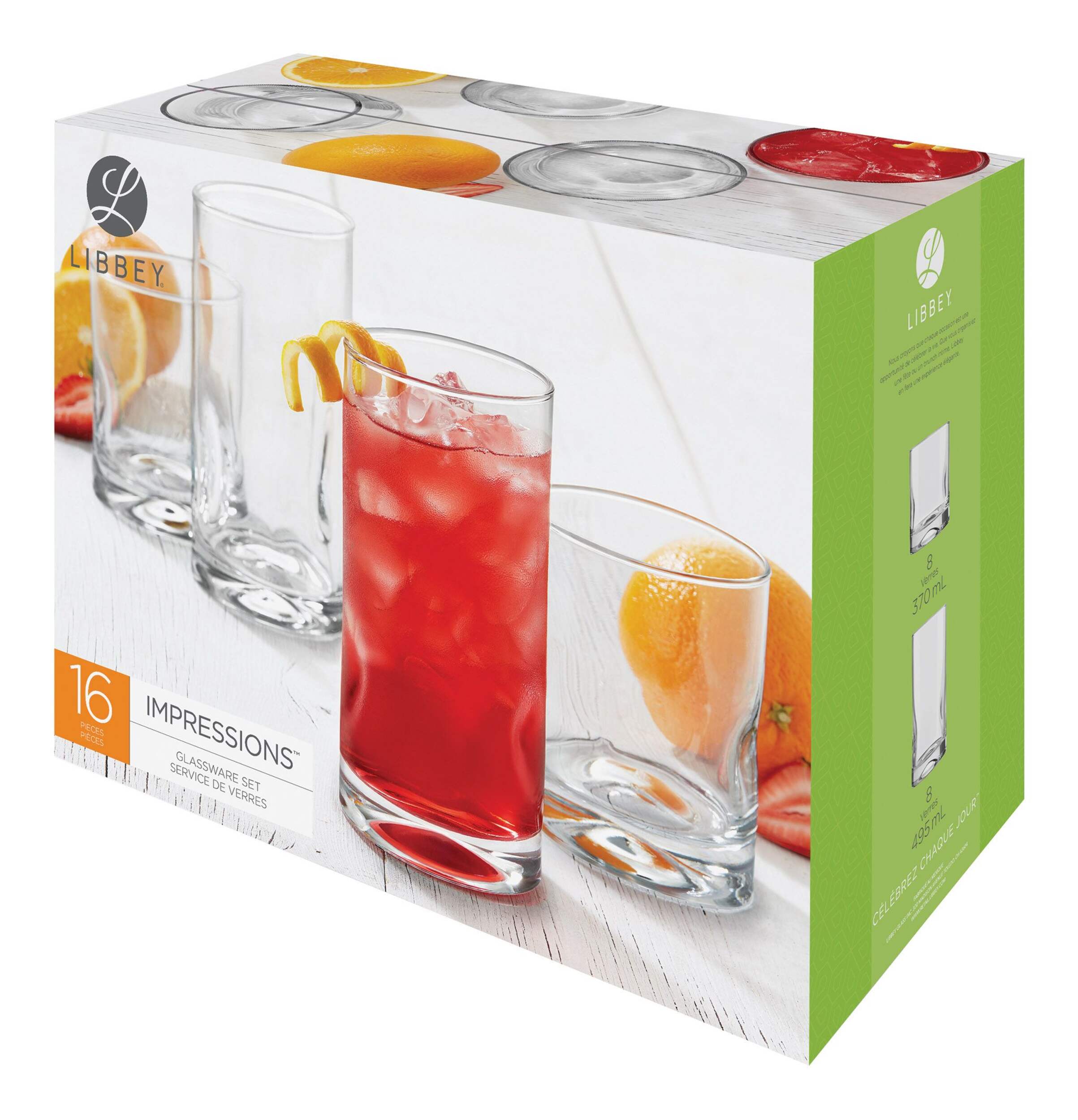 Comprend : 8 verres à whisky doubles de 355 mL (12 oz) et 8 verres à boissons rafraîchissantes de 503 mL (17 oz)