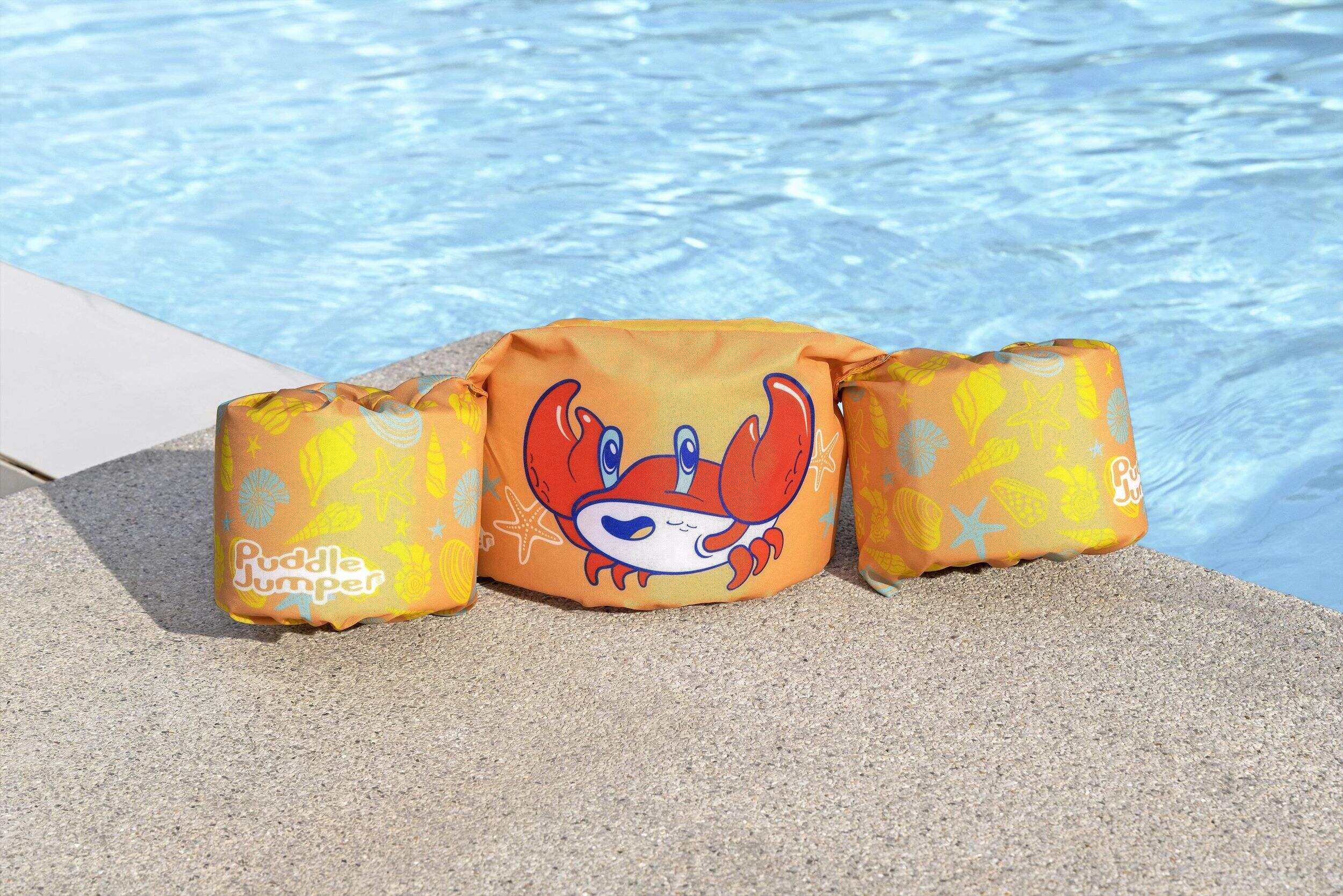 Profitez d'un été rempli de sourires pleins d'éclaboussures avec le gilet de sauvetage pour enfants Puddle JumperMD, qui présente des graphiques amusants