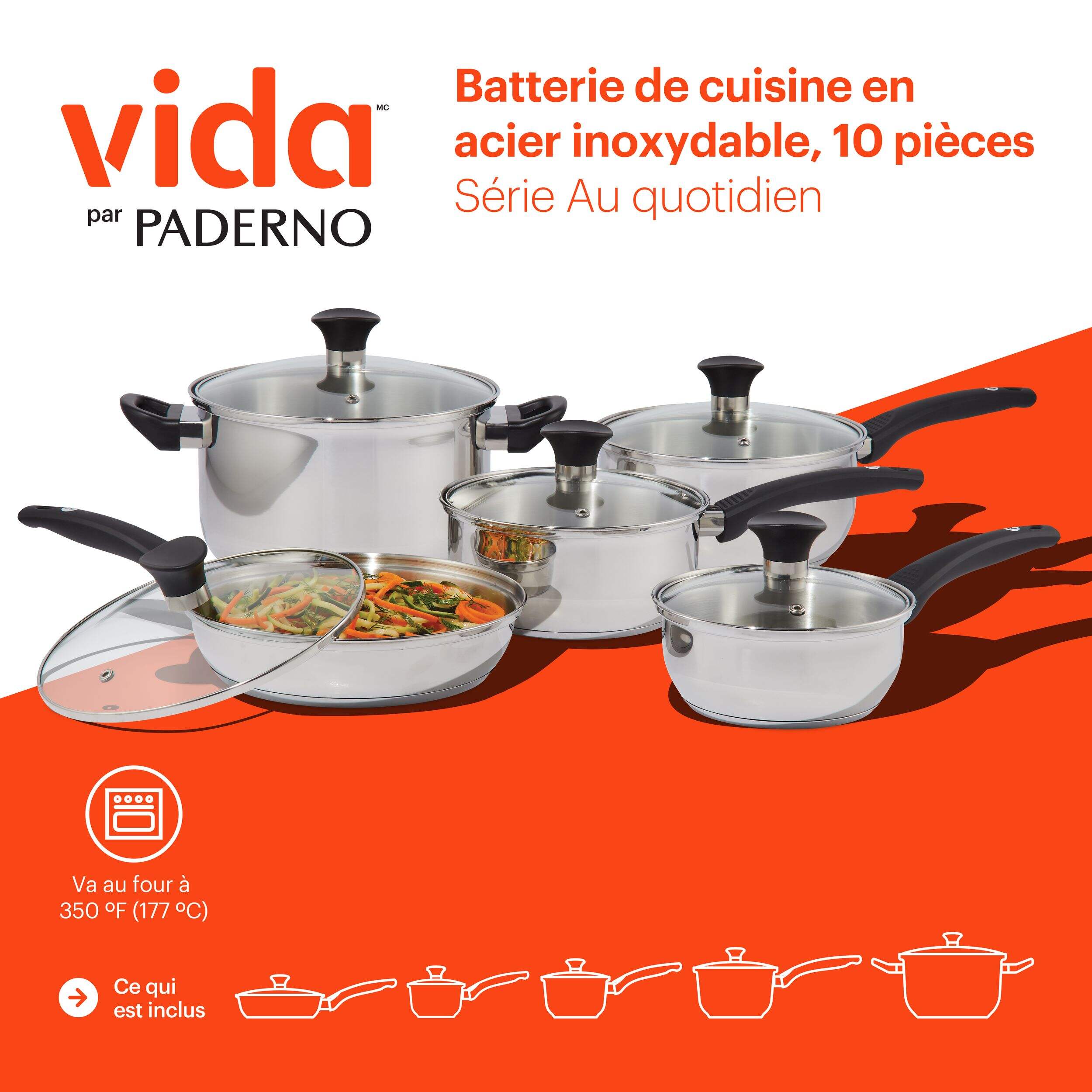 Batterie de cuisine en acier inoxydable de qualité alimentaire supérieure Vida de PADERNO compatible avec toutes les cuisinières, y compris les cuisinières à induction